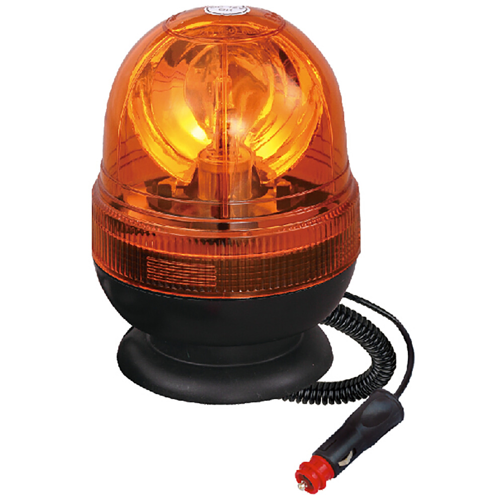 Warnleuchte mit Halogenlampe H1 12V/55W mit Magnetbefestigung Spiralkabel und Stecker, Schutzklasse IP66, Betriebstemperatur -30°C bis 60°C, Zertifizierungen: ECE R10, ECE R65, Höhe 169mm, Durchmesser 127mm, über 10.000 Betriebsstunden