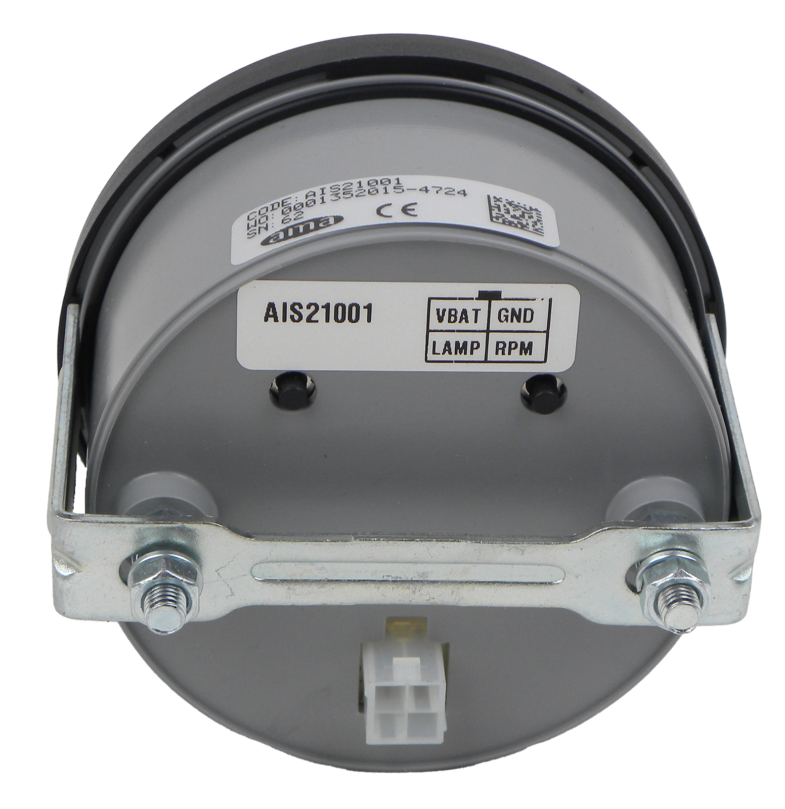 Komplett mit Anschlusskabelsatz,0-4000 U/min., Ø 80 mm, mit Adapterring fürDurchmesser 100 mm.Das Signal für die Drehzahlerfassung erfolgt über Anschluss W von der Lichtmaschine10-32V analoger LCD-Drehzahlmesser mit Schrittmotor-Technologie, 4000 U/min, weißer LED-Beleuchtung und orangefarbenem Betriebsstundenzähler.Bohrschablone mit 100,5 mm Durchmesser, IP65 frontseitig.Betriebstemperatur -20°C bis +90°C.Programmierbar über zwei Tasten auf der Rückseite des Instruments.4-poliger Molex Minifit Jr-Stecker.90 cm Anschlusskabel im Lieferumfang enthalten.EMV: ISO 7637-2 ISO 2575Technische Daten:Nennspannung: 10-32 VDisplay-Typ: analogico - digitaleBreite: 10 cmBetriebstemperatur: -20° / + 85° CSkala: 0-4000 RPMBohrungsdurchmesser: 100 mm