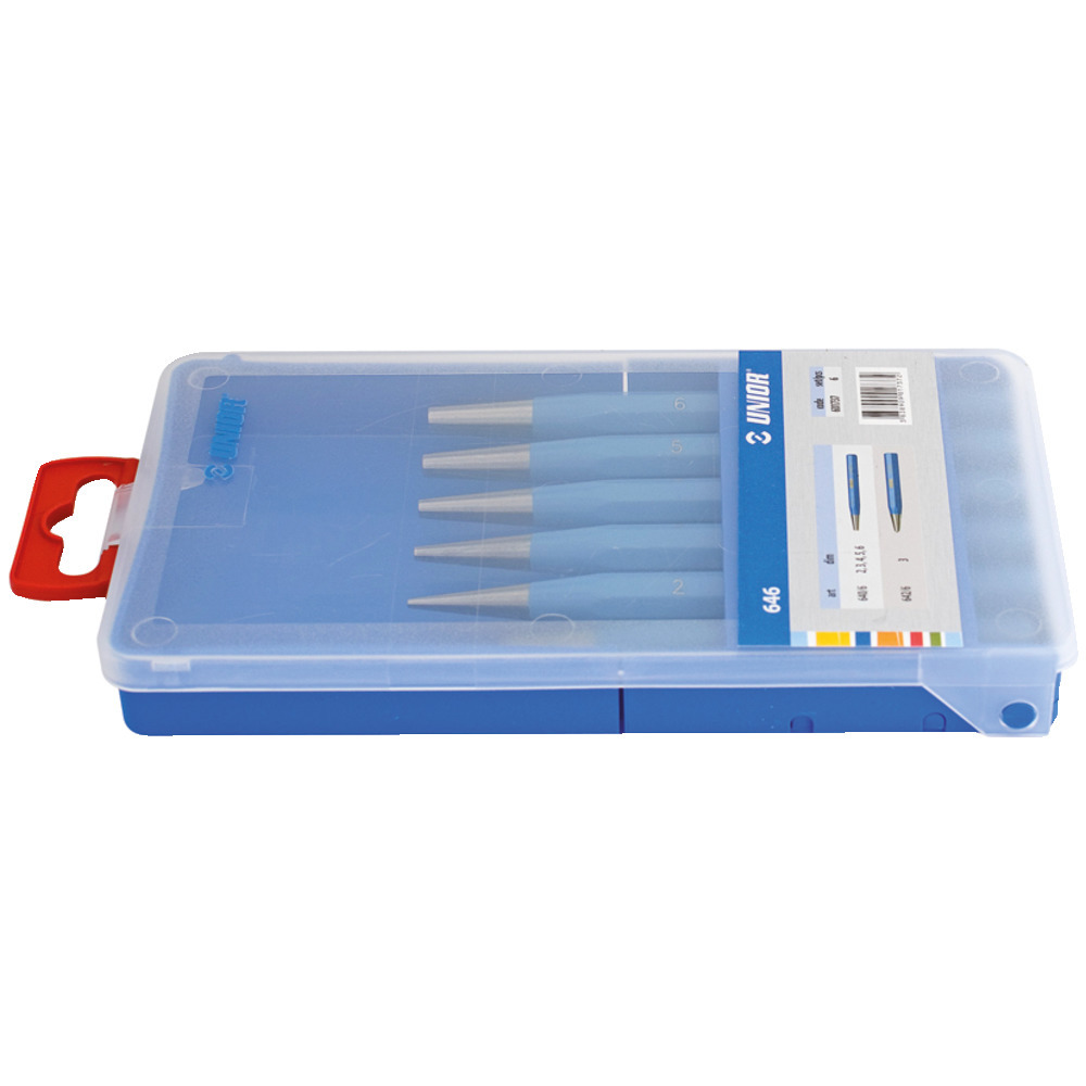 6-tlg., Chrom-Vanadium, in Halterung, Lufthärtestahl, vergüteter Hartkopf, Größe 2 mm, 3 mm, 4 mm, 5 mm, 6 mm, und 1 Stk. Körner. Kompletter Satz.
