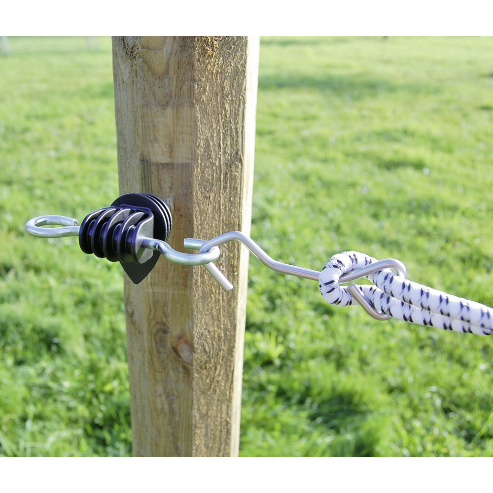 Stromführendes 7 mm Elastikseil mit 3 x 0,30 mm Niroleiter (3 Jahre Garantie). Auf ca. doppelte Länge aufziehbar, kein Einklemmen von Mähnen- oder Schweifhaaren, geeignet für flexible Torsysteme (z. B. E-Line). Länge 25 m.