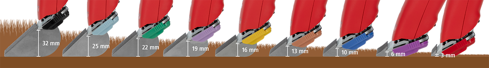 Set bestehend aus 9 SnapOn Aufsteckkämmen: 3 mm, 6 mm, 10 mm, 13 mm, 16 mm, 19 mm, 22 mm, 25 mm, 32 mm