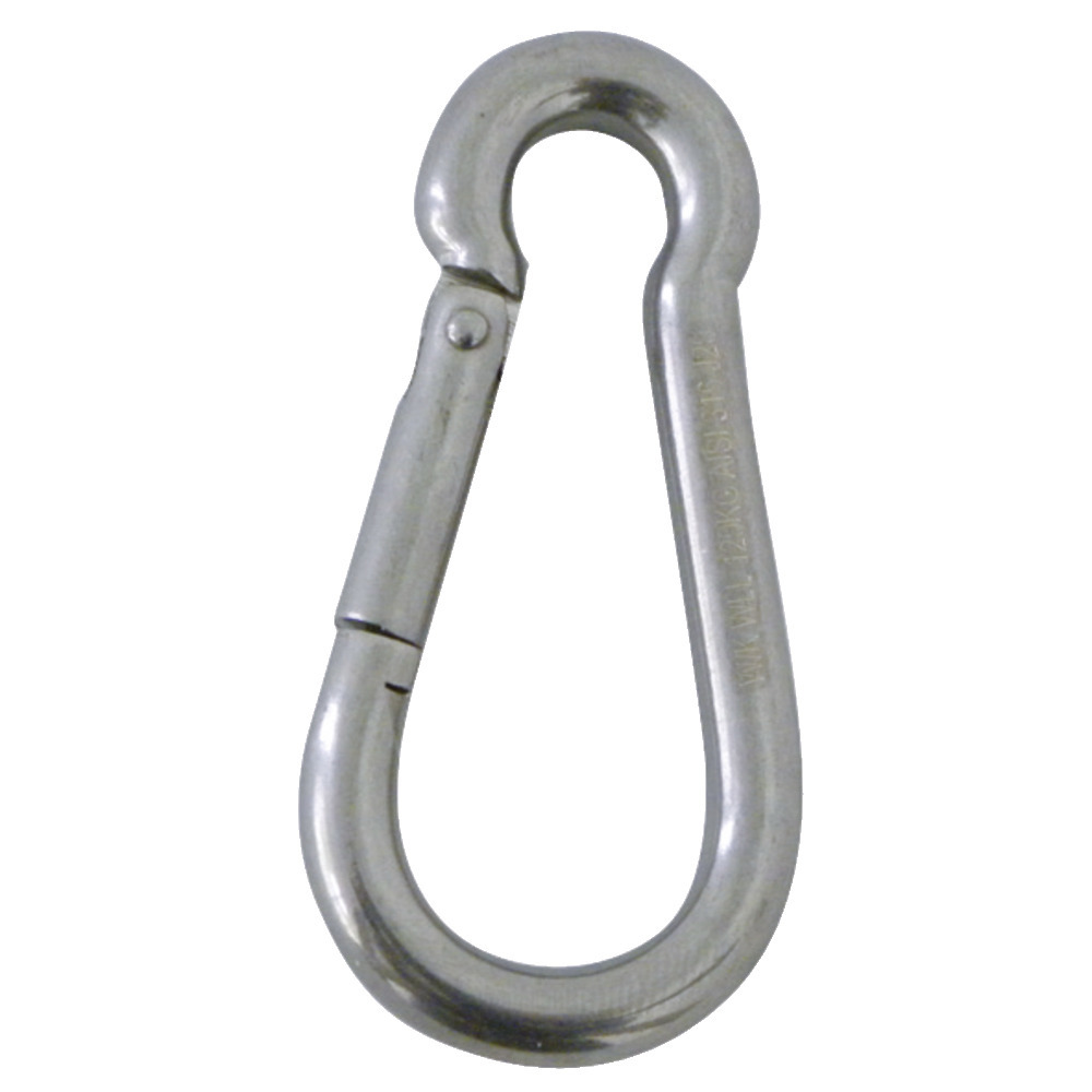 Rostfreier Feuerwehr Karabinerhaken mit gefederter Verriegelung.