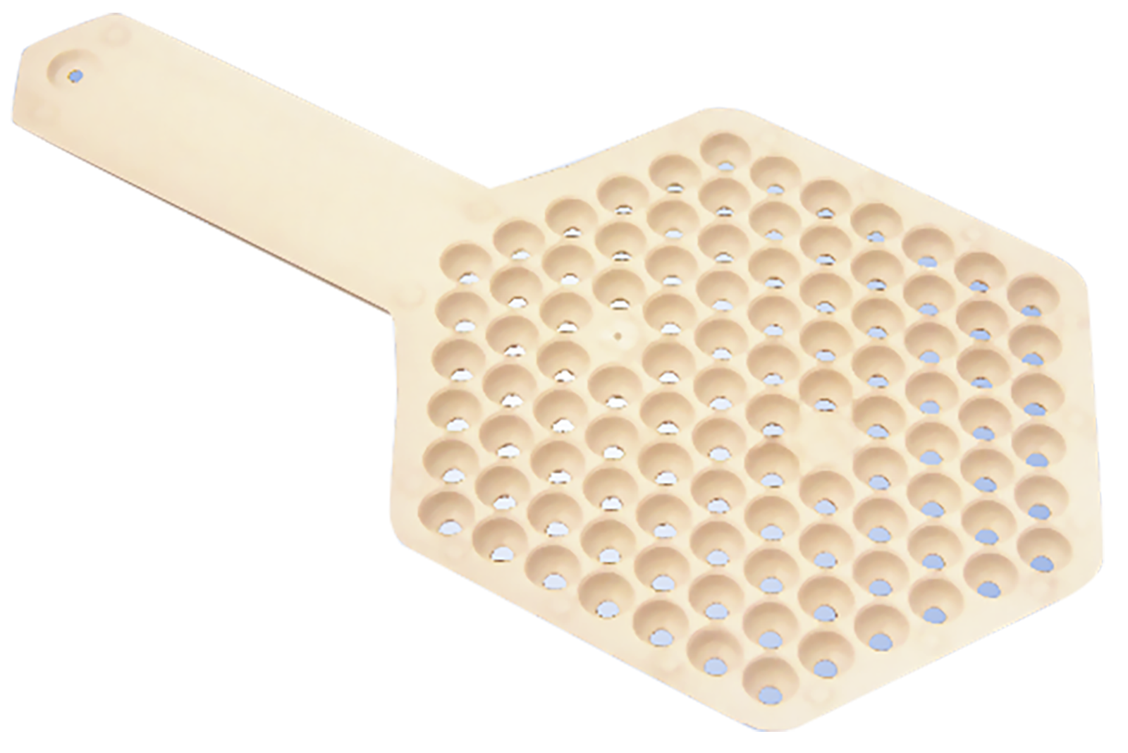 Mit dieser Eierzählplatte aus robustem Kunststoff lässt sich die Anzahl von Salmonideneiern schnell und zuverlässig bestimmen.