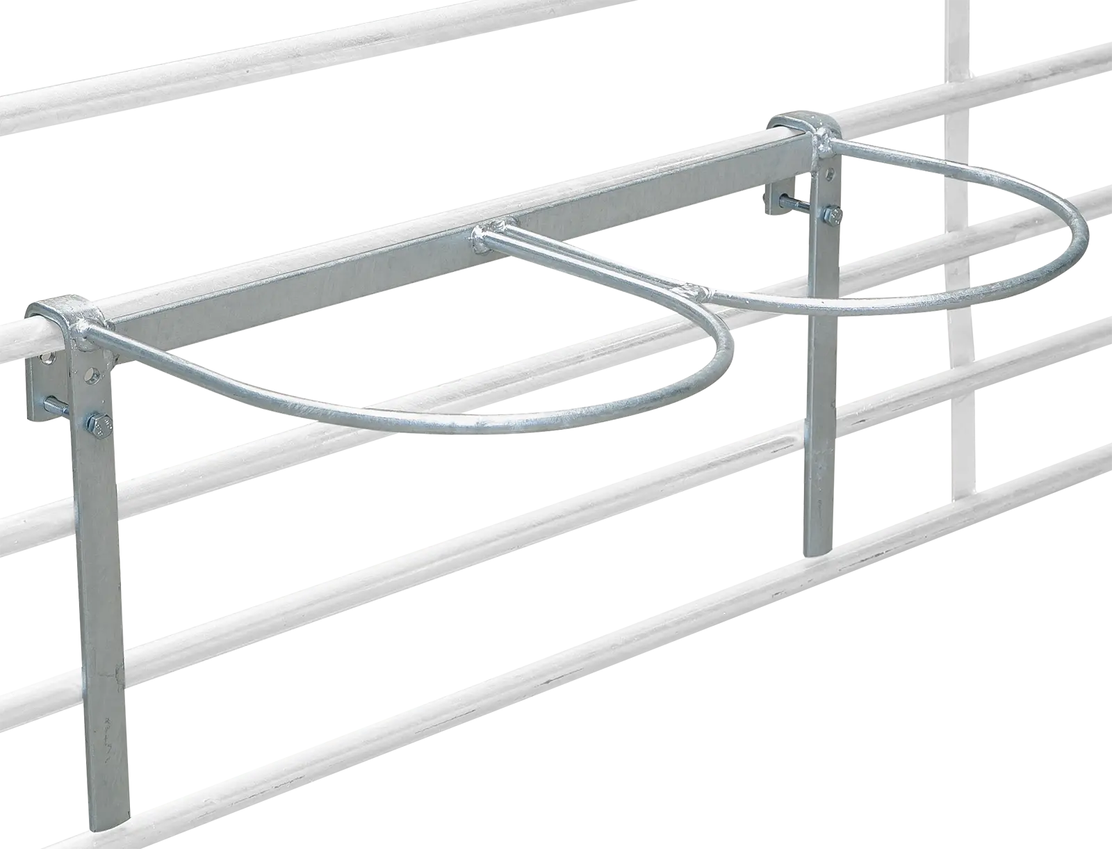 Feuerverzinkter Doppel-Eimerhalter. Ø 28 cm. zum Einhängen in Panels, Horden und Rohre bis Ø 35 mm.