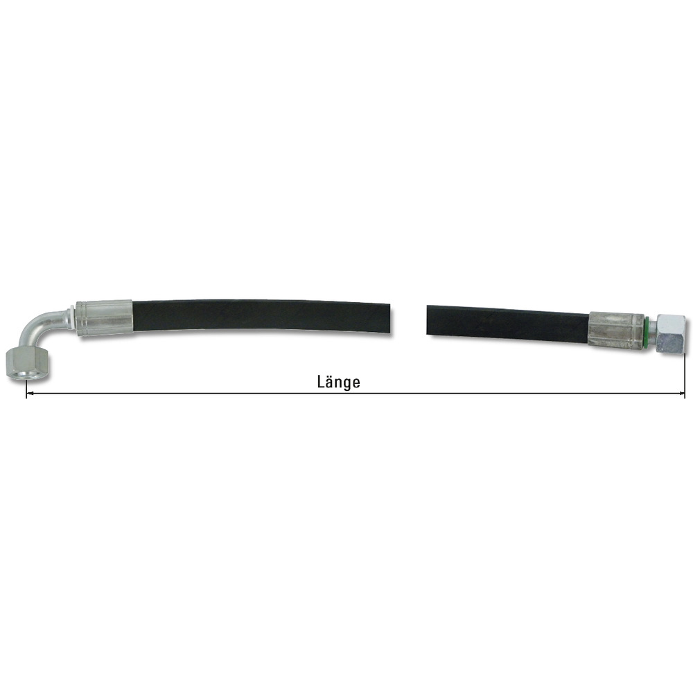 Einbaufertiger Hydraulikschlauch Nennweite DN10, 1 Anschluss gerade, 1 Anschluss 90° gebogen