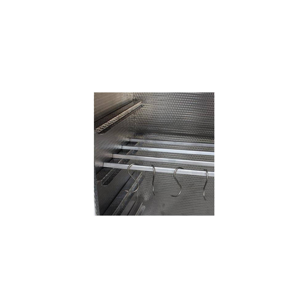 Passend für Räucherofen Smoki mit den Grundmaßen 39x33 cm. Zum Auflegen an den seitlichen Halterungen, um Haken an die Stangen zu hängen. Länge 340 +- 1 mm, Abgewinkelt, Material: 1.4301 V2A