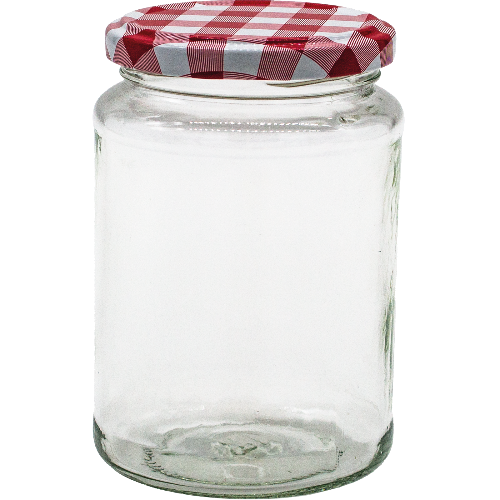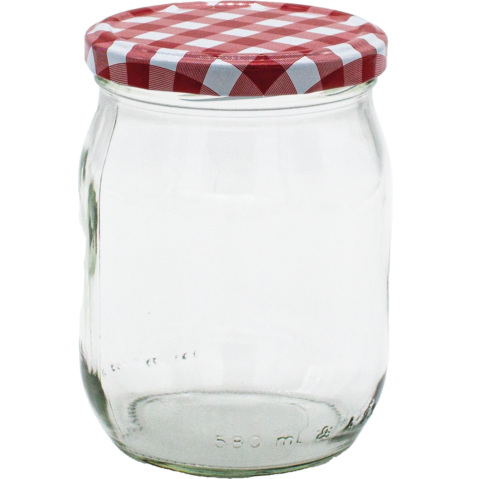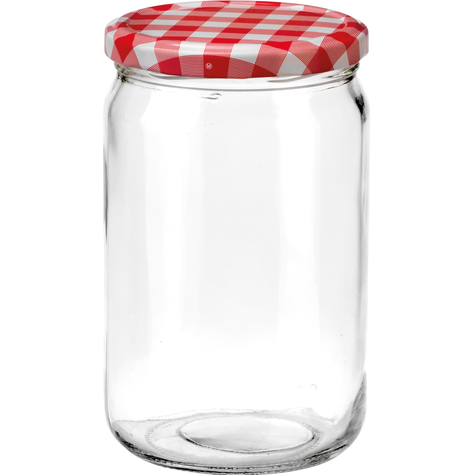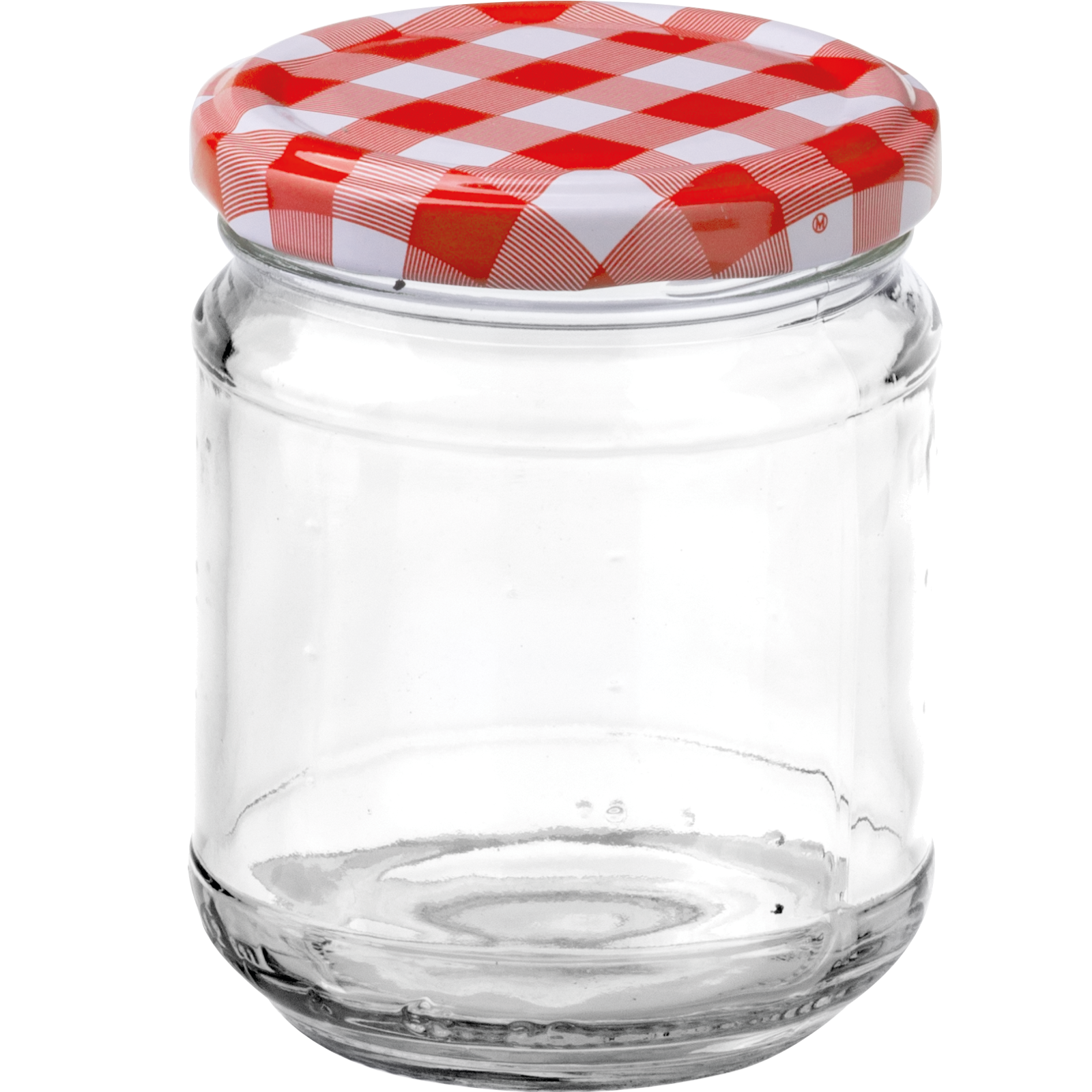 Klassische Einkochgläser mit Schraubdeckel im Karo-Design. Ideal zum Konservieren von Obst und Gemüse.