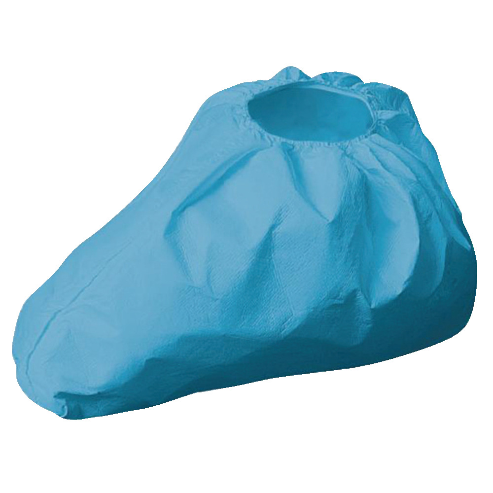 Knöchelhohe Einmalschuhe zum Überziehen. Größe ca. 41 x 15 cm, mit Gummizug, blau. Die Materialstärke beträgt 0,035 mm, aus Polyethylen (PE). 100 Stück/Packung