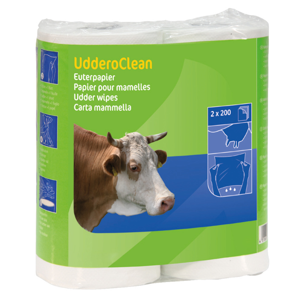 Hochnassfeste Spezialqualität, Eutertücher geeignet für das Wetomatikabrollsystem. Doppelrollenpackung mit je 200 Abrissen 23 x 28 cm.