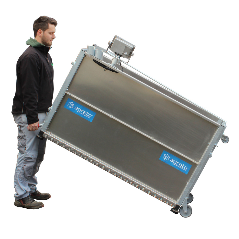 Leicht transportierbar: Die leichte und kompakte Bauweise aus verzinktem Stahl und Aluminium ermöglicht ein problemloses Hantieren der Waage, auch in engen Stallungen. Wasserdicht und stallklimatauglich. Die Wiegetechnik ist absolut staub- und wasserdicht nach Schutzklasse IP68 und damit für alle Anwendungen im Freien, in Ställen und Feuchträumen geeignet.