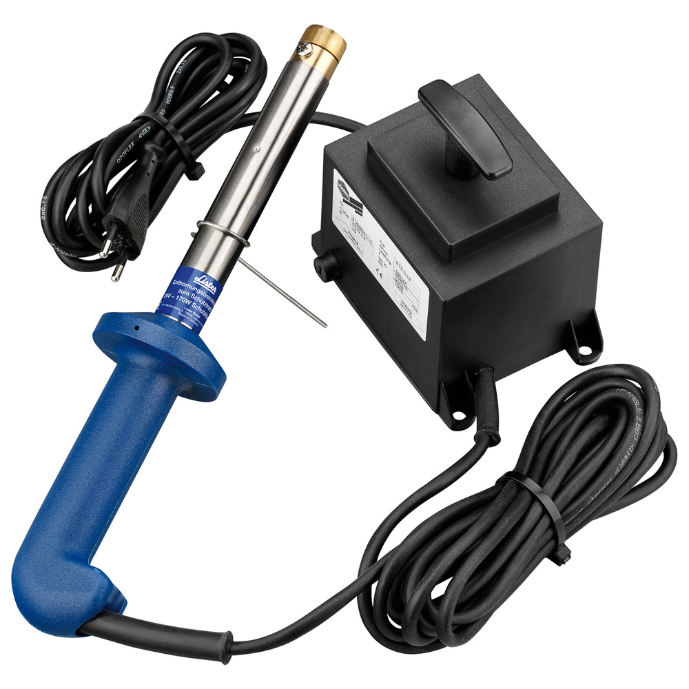Hochleistungs-Enthornungsgerät mit Schutztrafo 24 V - 180 VA, durchbrennsicher durch verdichtetes Heizelement. Temperatur und Form der Kolbenspitze garantieren somit ein hygienisches und tierschützendes Enthornen von Kälbern (bitte lokale Tierschutzbestimmungen beachten!). Leicht auswechselbare Brennspitzen, Sicherheitsgriff, kein Abknicken des Kabels während der Enthornung. Verkürzte Kolbenlänge, dadurch optimale Handhabung durch geringen Abstand des Griffs zum Hornansatz. Brennspitze B ist vormontiert, Brennspitze A ist beigefügt.