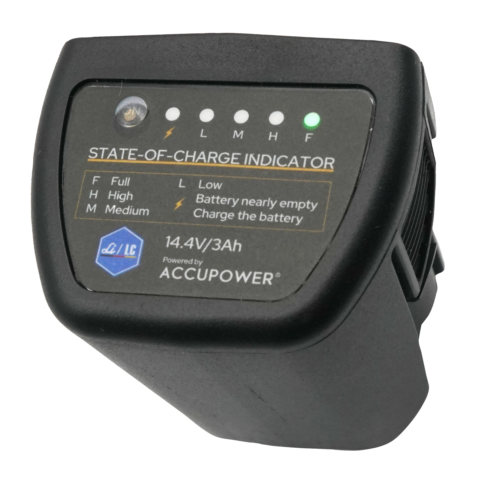 Lithium-Ionen ​Akku mit Ladestandsanzeige. 14,4 V, 3 Ah. Passend zu allen Lister-Schermaschinen der Reihe Profi Line LC.