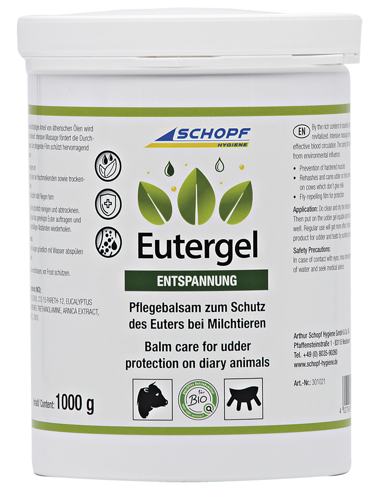 Pflegemittel zum Schutz der Euter bei Milchtieren. Fliegen- und insektenabweisend. Zur äußeren Anwendung bei frischmelkenden und trockenstehenden Kühen, 1 Liter. Biotauglich!