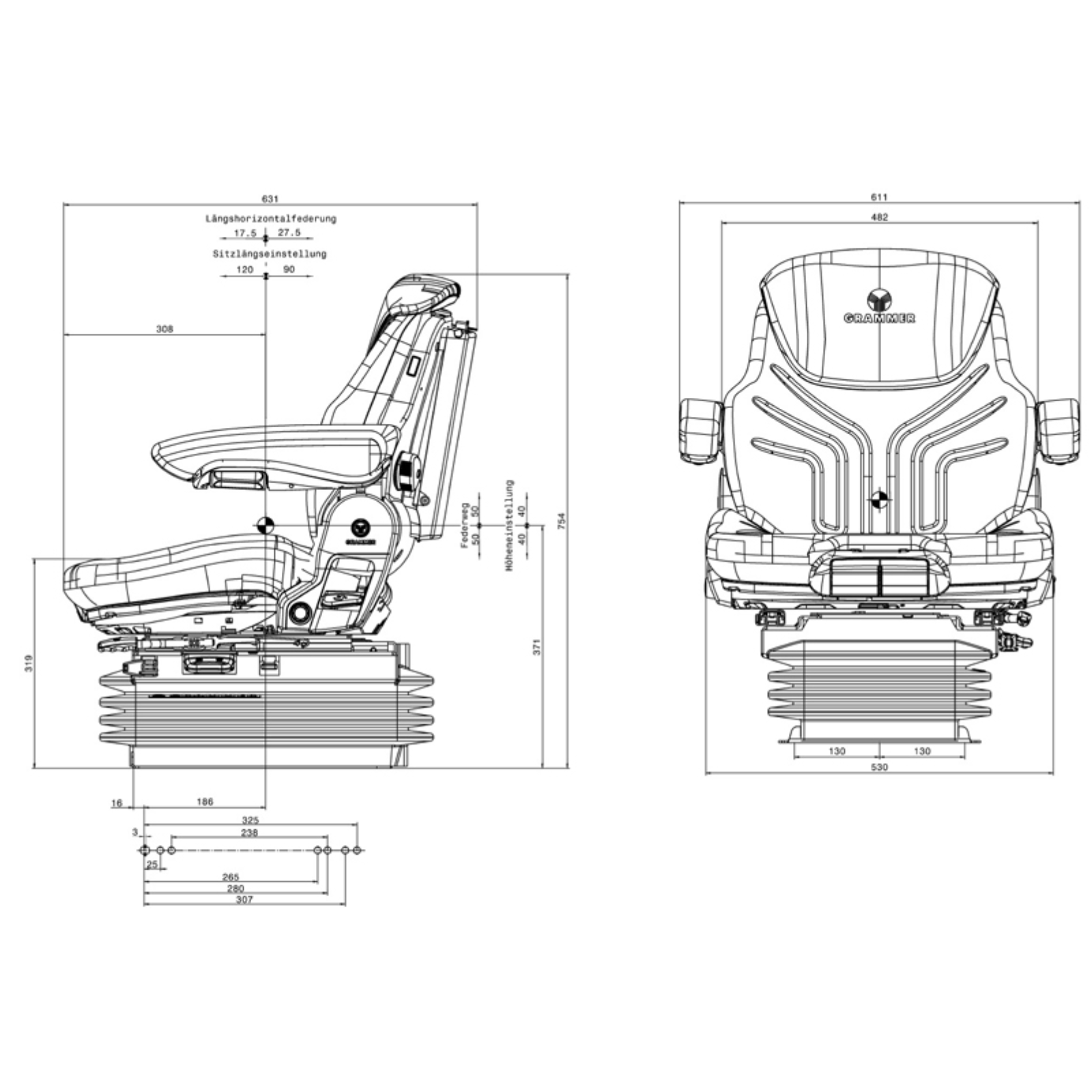 - Höheneinstellung stufenlos 80 mm luftunterstützt