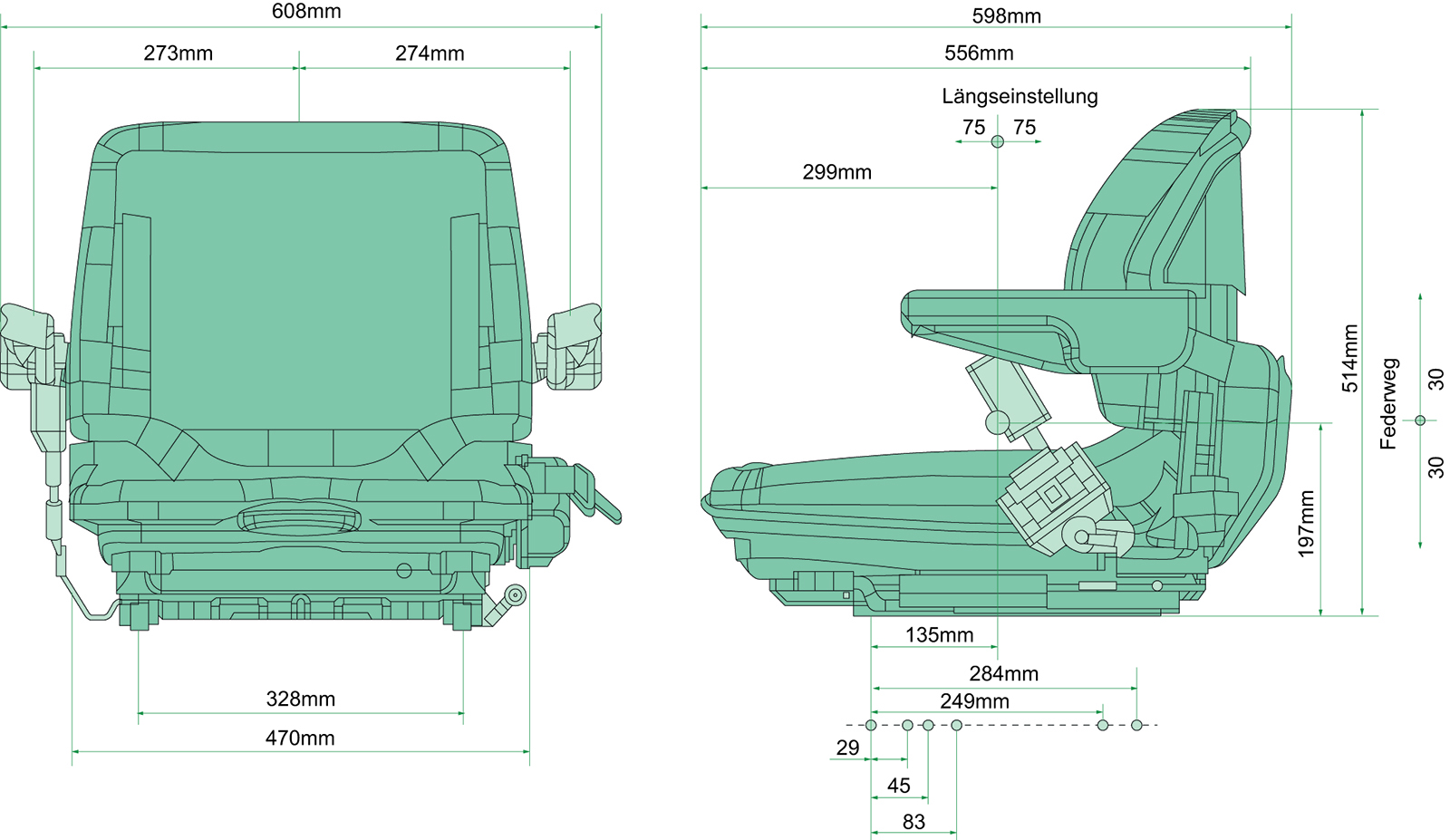Mechanisch gefederter Fahrersitz – ideal für Stapler, Baumaschinen und Hoflader. Dieser robuste Fahrersitz mit mechanischer Federung und hydraulischen Dämpfern sorgt für spürbaren Sitzkomfort – auch bei täglichem Einsatz auf unebenem Gelände. Der Sitz federt Stöße zuverlässig ab und entlastet Rücken und Gelenke.