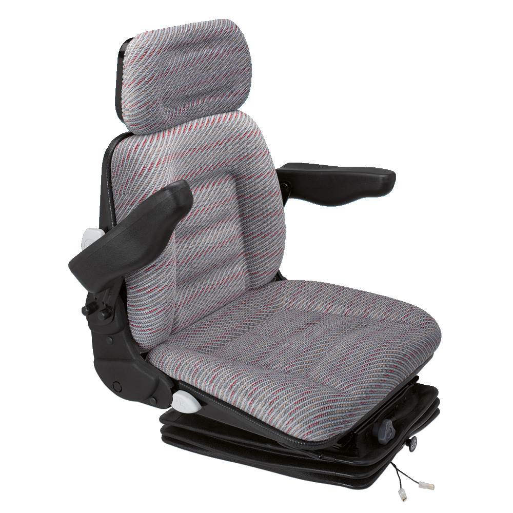 Hochwertiger luftgefederter Komfortsitz mit horizontaler Grundplatte, mit Bandscheibenstütze und Horizontalfederung. Hochwertiger Velourstoff, leistungsstarker 12 V Kompressor. Dieser Sitz zeichnet sich durch seine geringen Einbaumaße aus.