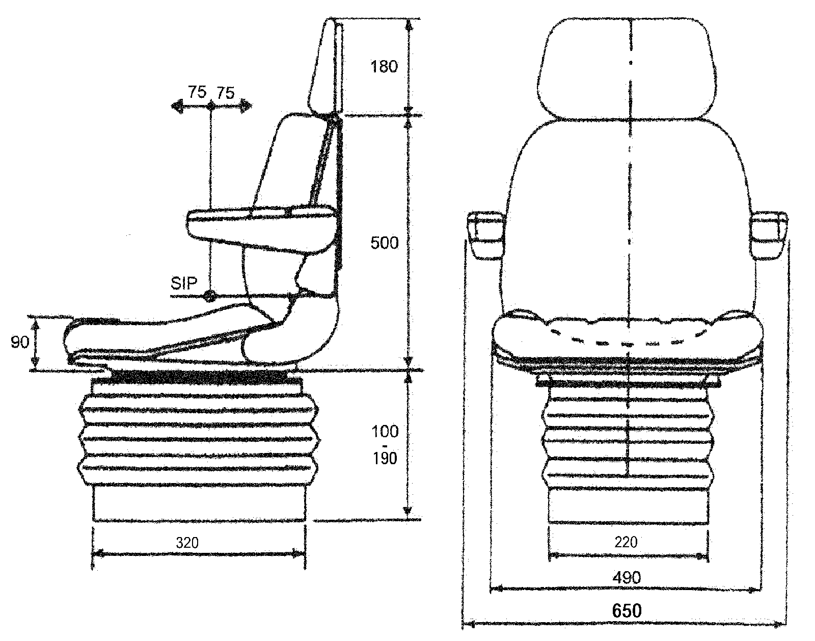 Hochwertiger Komfortsitz mit horizontaler Grundplatte, mit Bandscheibenstütze, hochwertiger Velourstoff. Dieser Sitz zeichnet sich durch seine geringen Einbaumaße aus.