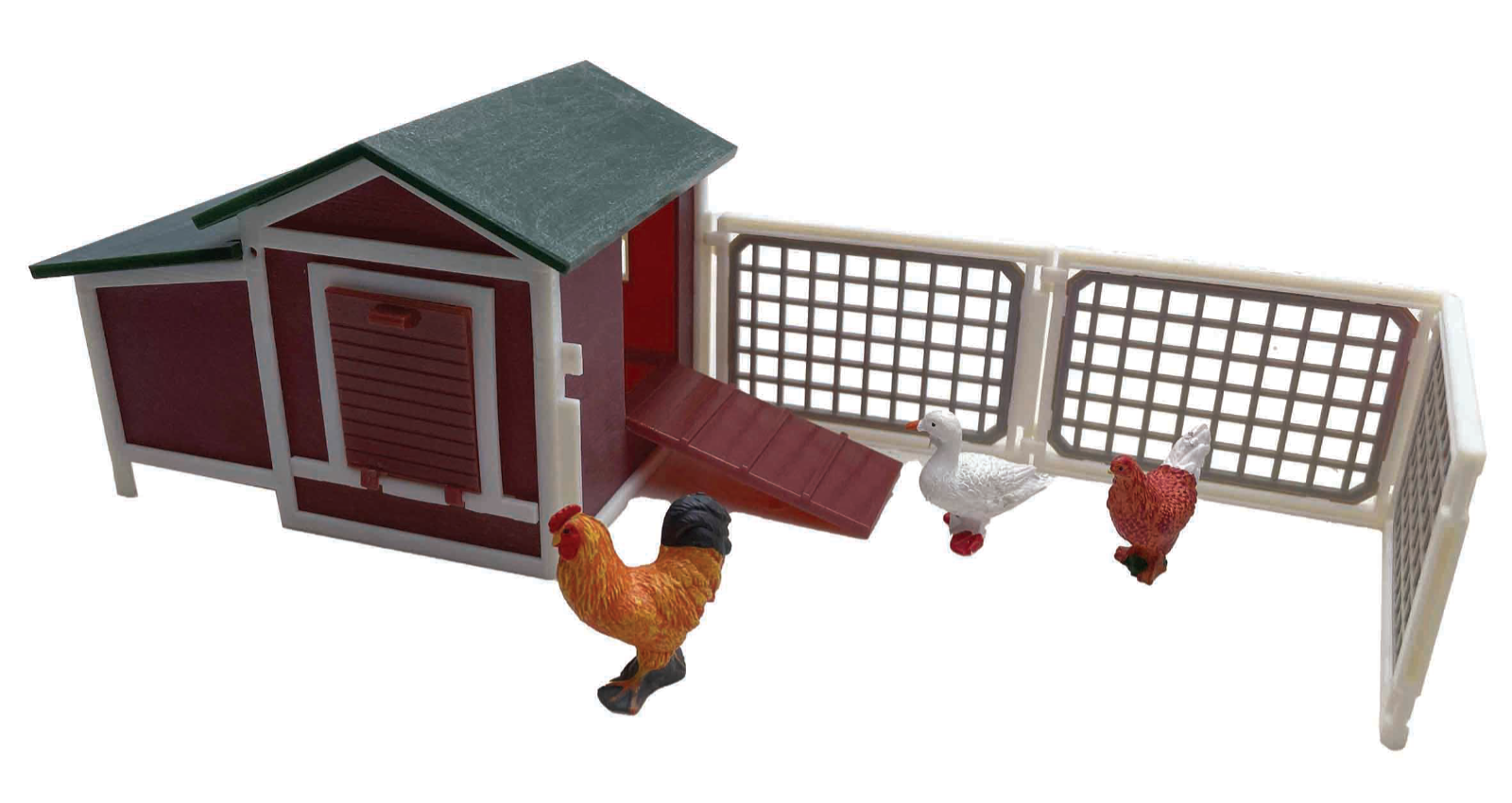 Mit diesem liebevoll gestalteten Hühnerstall-Set kommt echtes Landleben ins Kinderzimmer! Das Set enthält 17 Teile, darunter Huhn, Gans, Hahn sowie passende Zaunelemente und einen detailreichen Hühnerstall. Ein Traktor rundet das Set ab – perfekt, um das Futter zu bringen oder den Stall auszumisten. Kinder können mit diesem Set typische Alltagssituationen vom Bauernhof nachspielen: Tiere füttern, Eier einsammeln oder den Stall sauber halten.