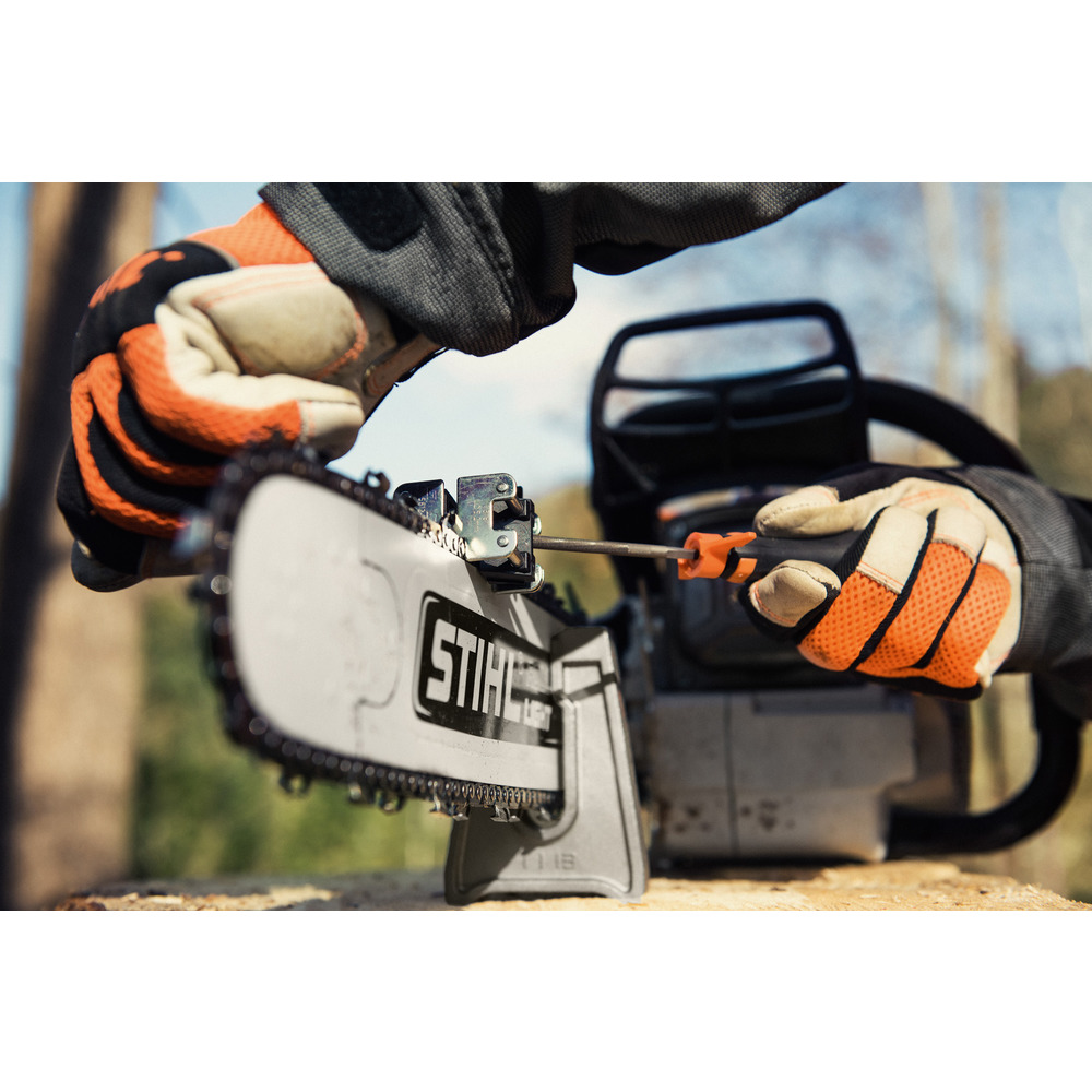 Zum Schärfen direkt im Wald. Große robuste Ausführung. Einfach ins Holz einschlagen => fester Sitz der Säge während des Schleifens.