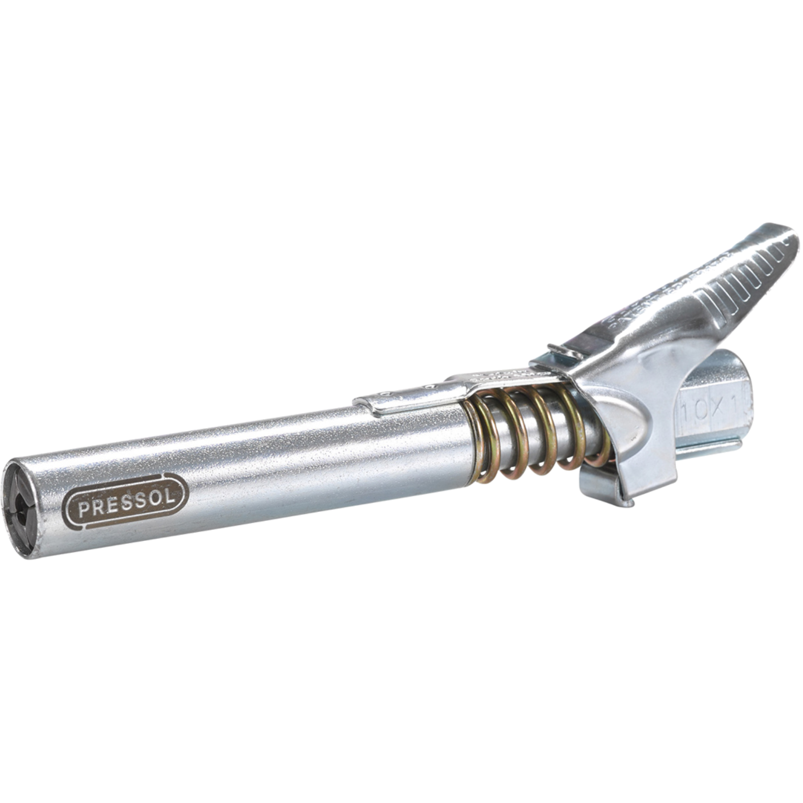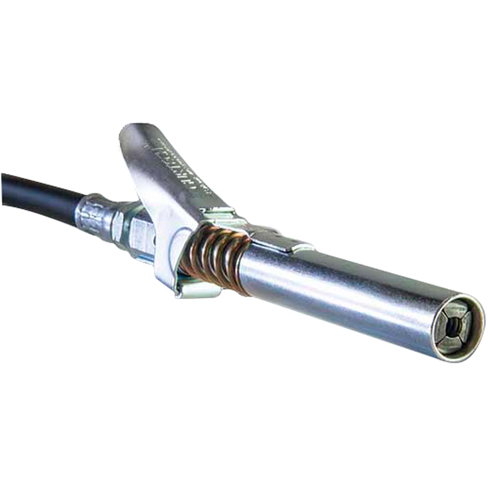 Spezial - Mundstück für alle DIN-Schmiernippel mit hebelbetätigter Klauenverriegelung - dadurch sicherer Halt und kein auslaufendes Fett.Extralange XL-Ausführung mit 88 mm Länge und nur 15 mm Durchmesser -für optimales Arbeiten und leichtes Entriegeln an schwer zugänglichen Stellen z.b. bei Baumaschinen oder den Einsatz in der Landwirtschaft.