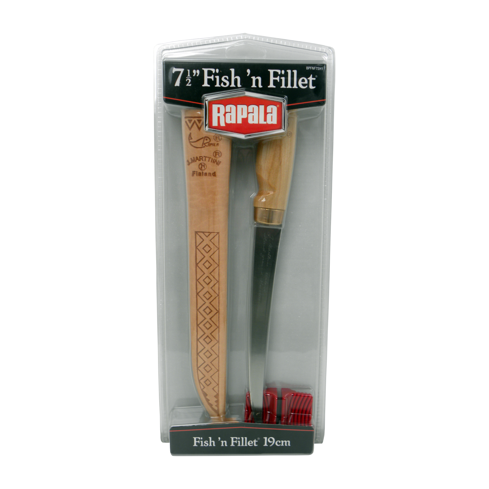 Filetiermesser SET - Messer und Messerschärfer in Blisterverpackung, Filetiermesser mit Lederscheide,Lederscheide mit geprägten Muster, ein wunderschönes FINLAND Messer, 19 cm Klingenlänge