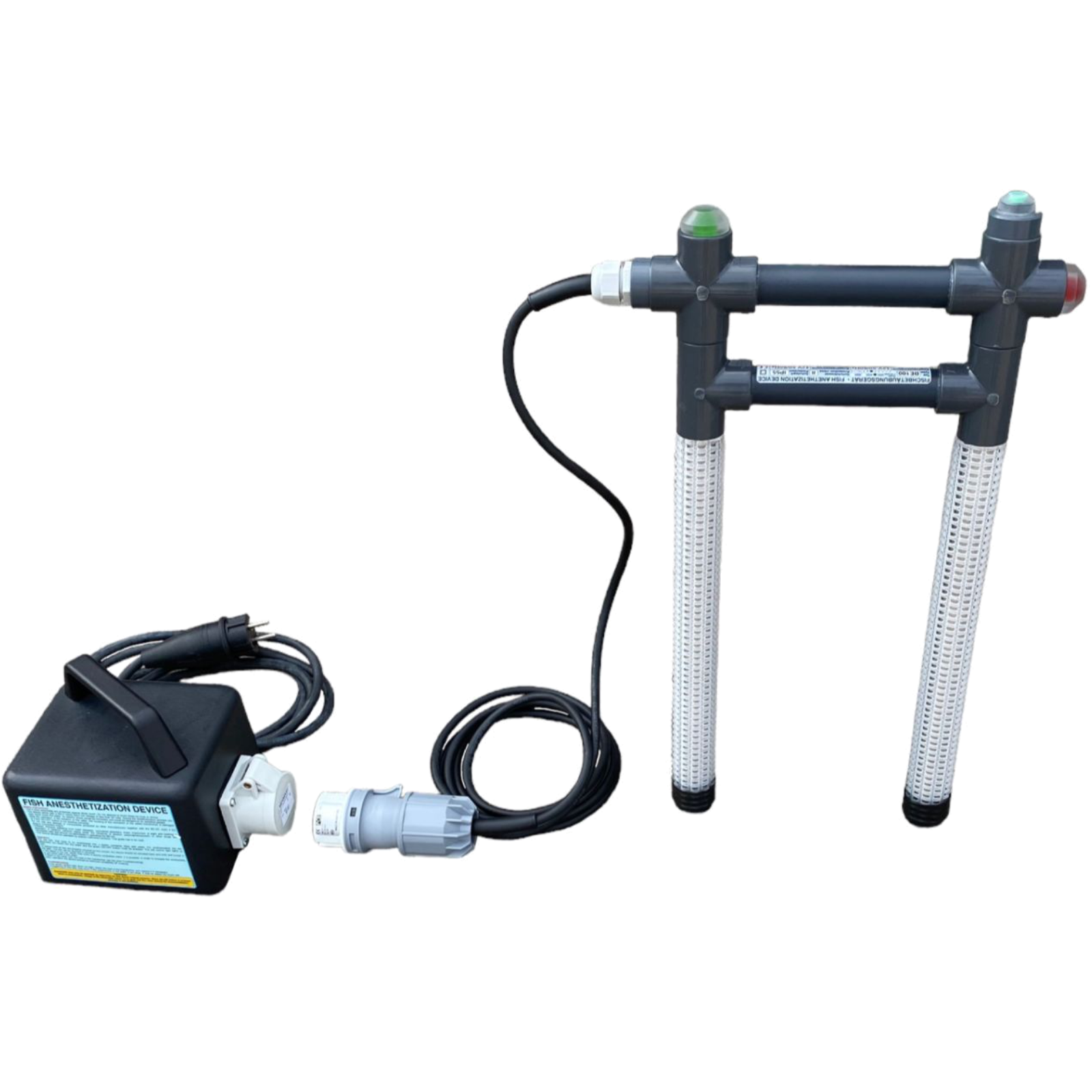 Betäubungsapparat BE100 mit Elektrode und TransformatorMit diesem Gerät lassen sich Fische auf sanfte Weise in einem beliebigen Kunststoffbehälter im Wasser für die anschließende Schlachtung betäuben.Transformator-Spannung:Eingang: 230 V WechselstromAusgang: 42 V Wechselstrom