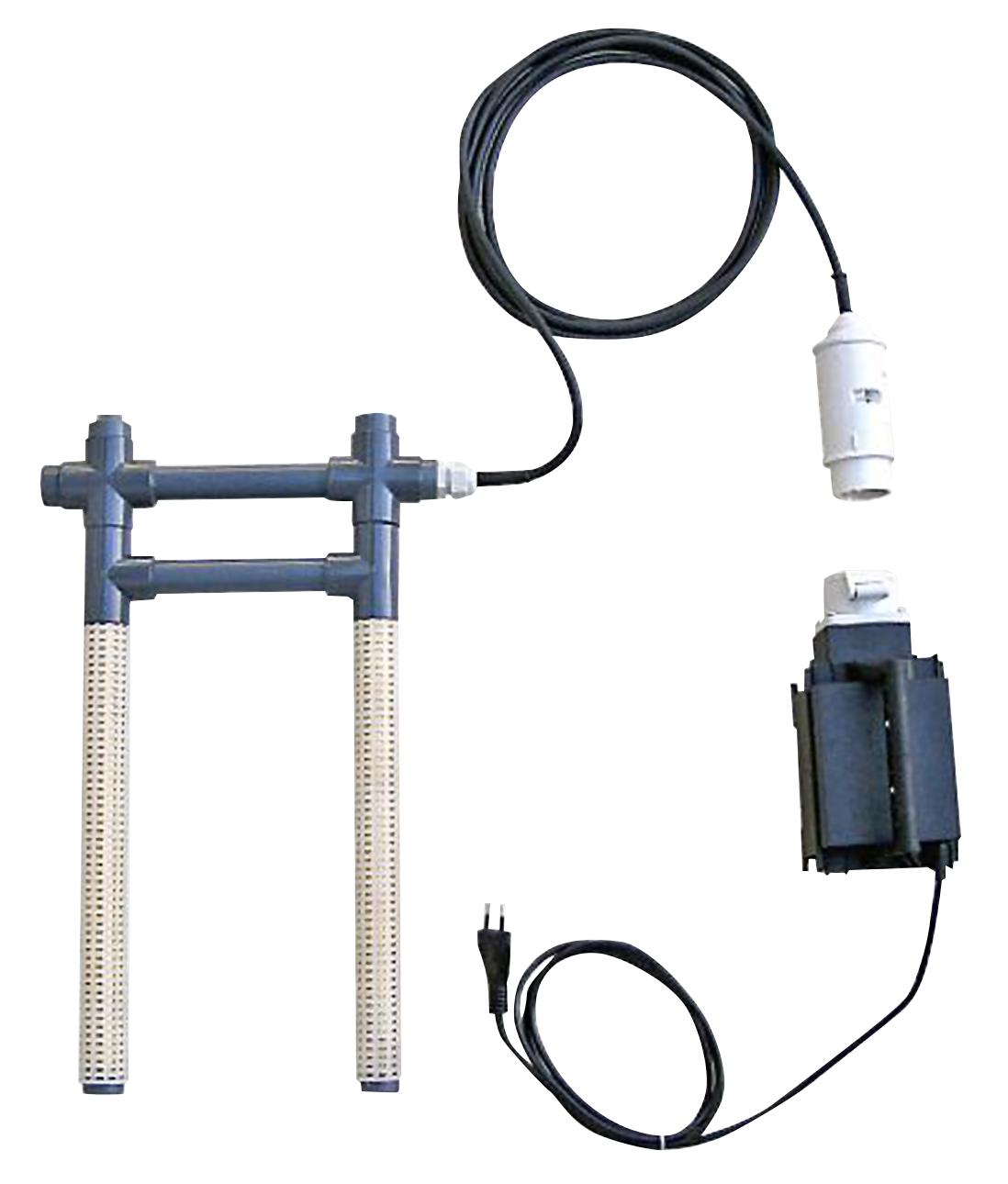 Das Gerät arbeitet mit Wechselstrom 42 V und wird inklusive Elektrode, Anschlusskabel und Schutztransformator geliefert.