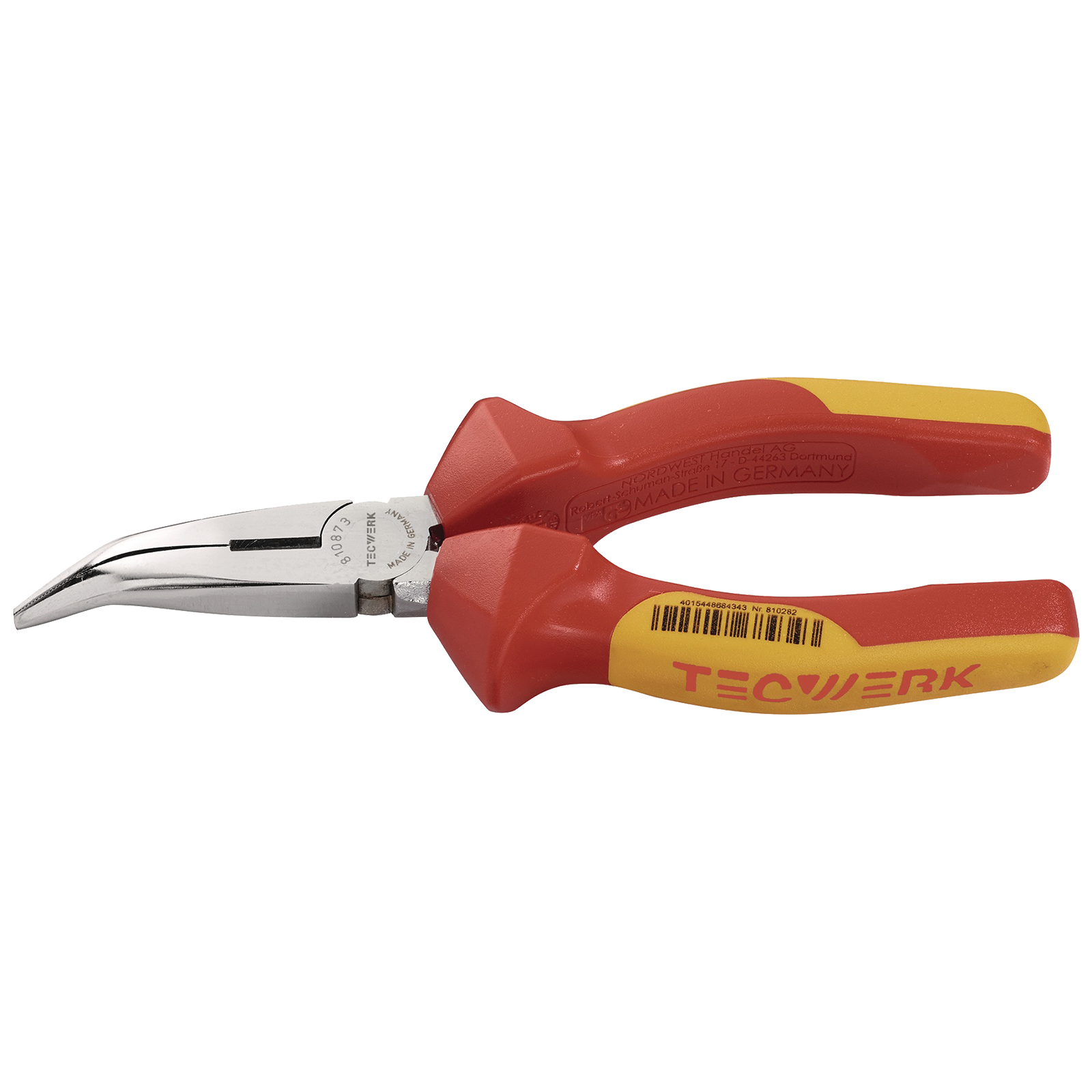 Tecwerk Flachrundzange Länge 200 mm verchromt 40Grad gewinkelt VDE Mehrkomponentenhüllen