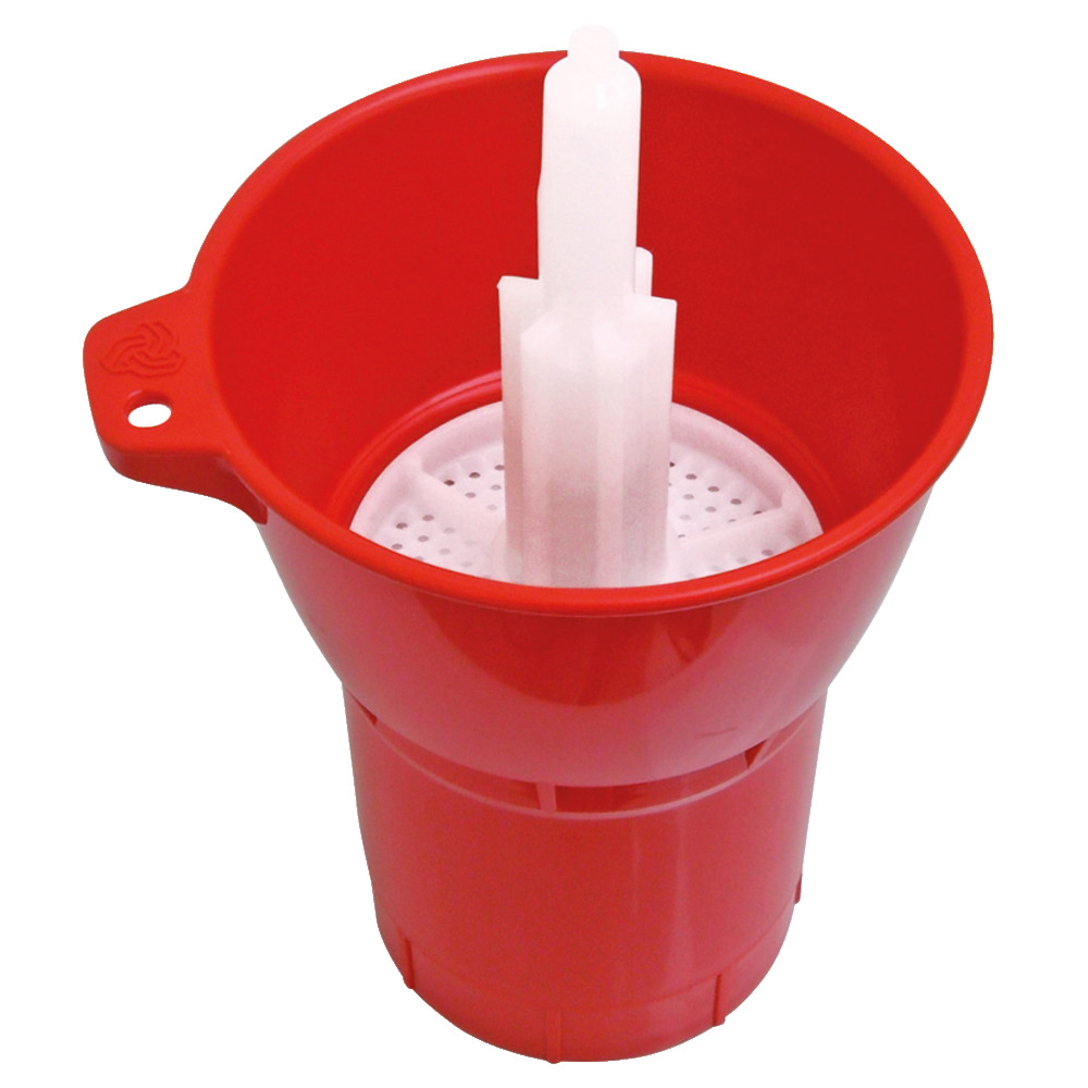 Der Flaschenspüler wird auf einen Tisch gestellt und mit Wasser oder einer Reinigungslösung befüllt. Das Gefäß kann ca. 300 ml aufnehmen. Die Flasche wird kopfüber auf den Zapfen gedrückt, durch auf und ab bewegen wird Wasser in die Flasche gedrückt, wodurch diese von innen gespült wird.