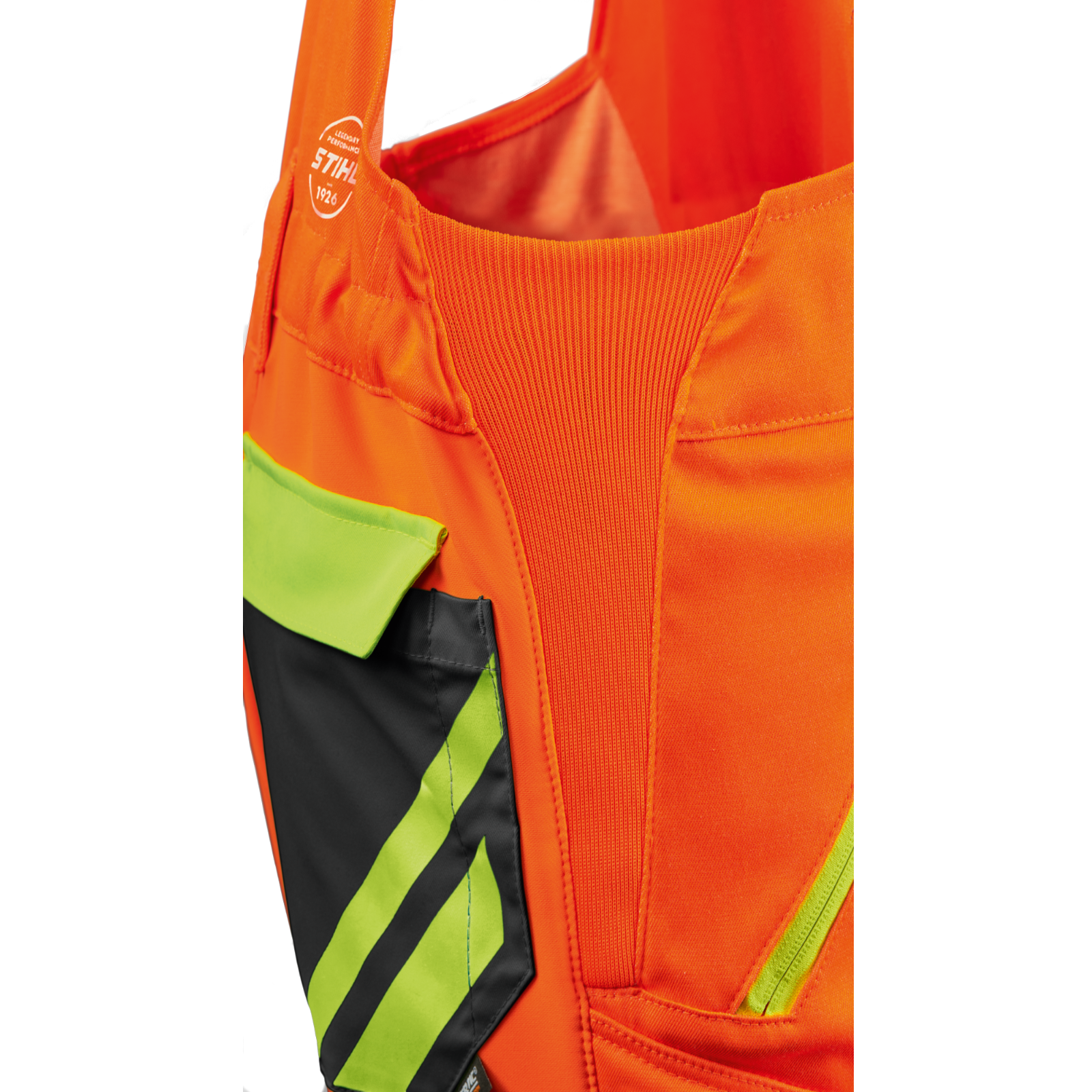 Das Futter der Hose besteht aus recyceltem Polyester, ebenso wie der Schnittschutz bei der Hose mit Schnittschutzklasse 1. Die wasser- und schmutzabweisende Wirkung wird ohne den Einsatz von PFAS erzielt. Ausgenommen davon ist der Warnorangeanteil an der Vorderhose. Maschinenwaschbar bei 60 °C und mit 400 U/min schleudern.