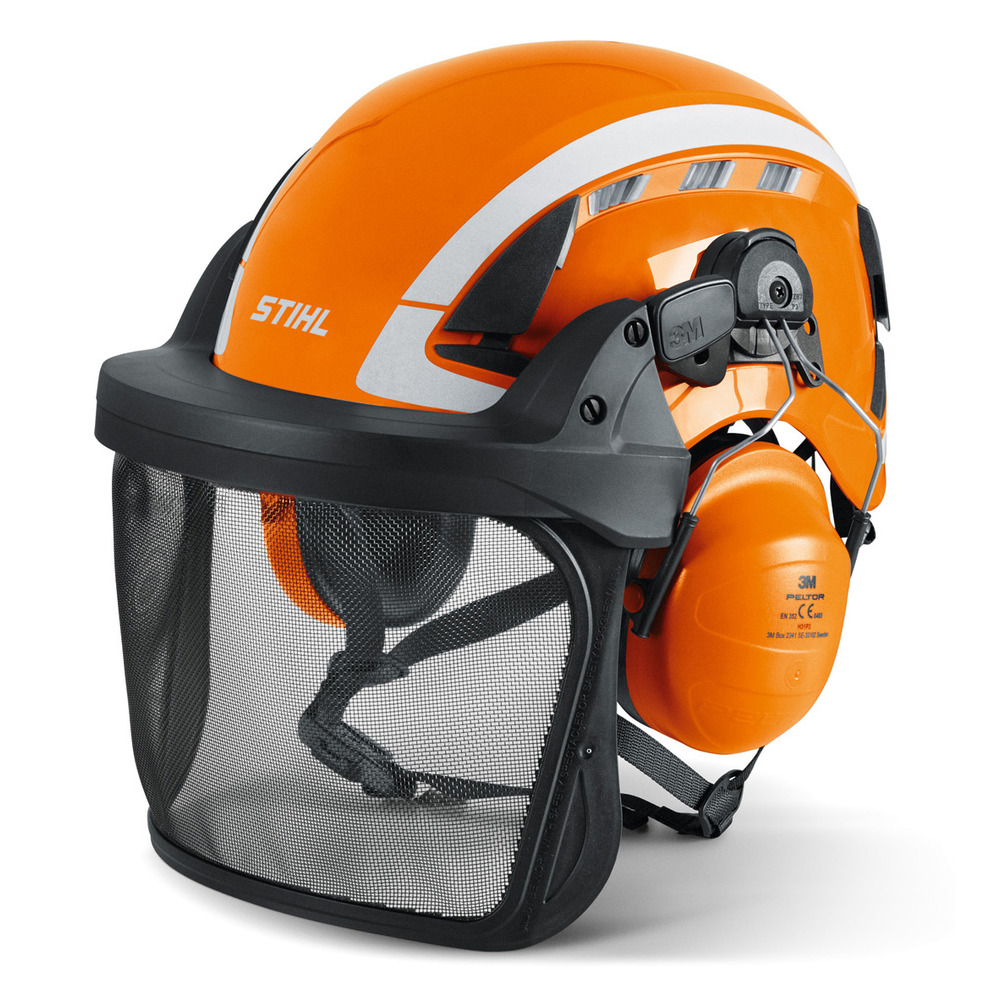 Kopfschutz-Kombination in neuem, schlankem Design mit ausgewogener Balance für perfekte Rundumsicht und hohen Tragekomfort.Universell einsetzbar am Boden zur Holzernte und für Baumpflegearbeiten.Sehr gute Belüftung und 4-Punkt Kinnriemen mit Magnetverschluss und komfortabler Ratschenverstellung des Kopfbands.Hohe Sicherheit durch Reflexaufkleber.