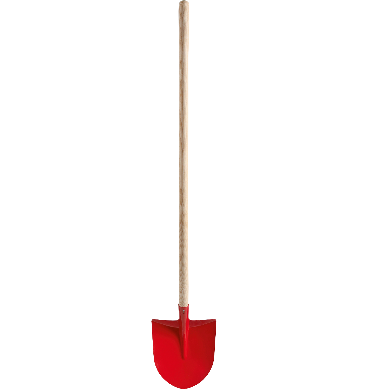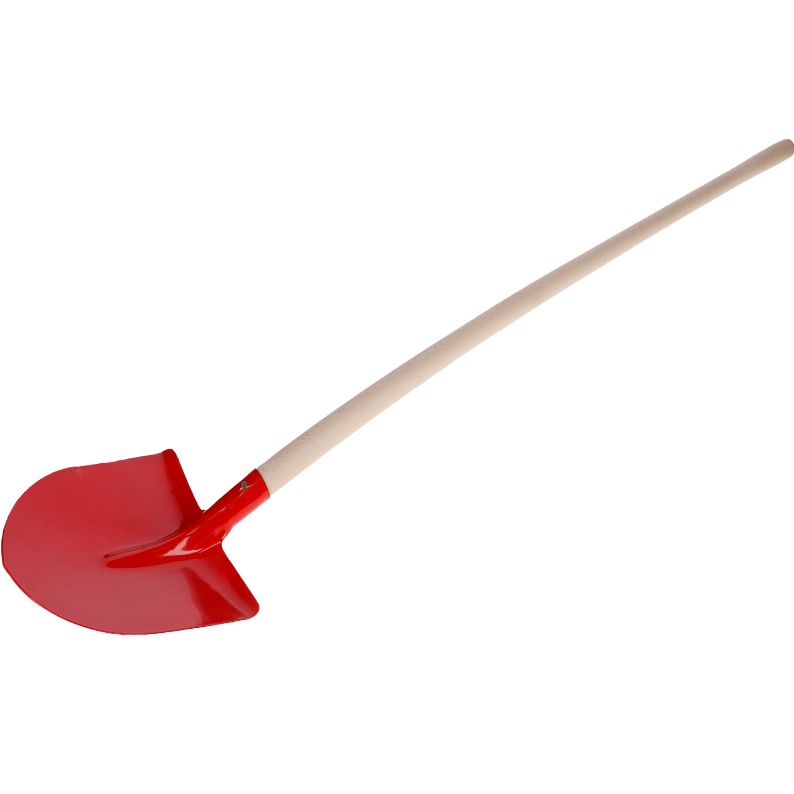 aus Stahlblech, rot lackiert, Größe 5, Länge 30 cm, Breite 27 cm.Stielhalter 38 mm​.Mit Buchenstiel (montiert)