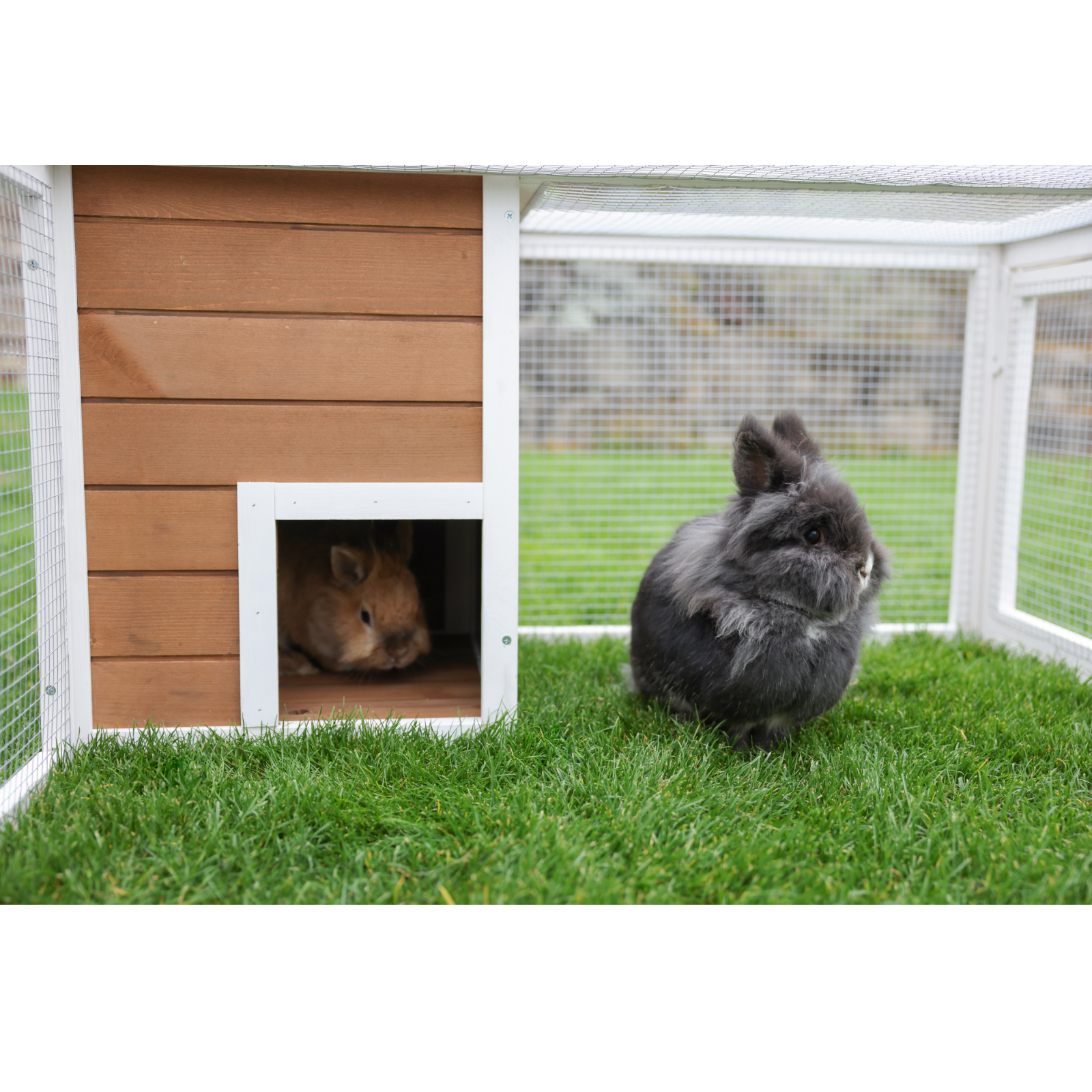• inklusive hochwertigem Holzhaus mit Boden zum Schutz vor Wind und Wetter und als Rückzugsort