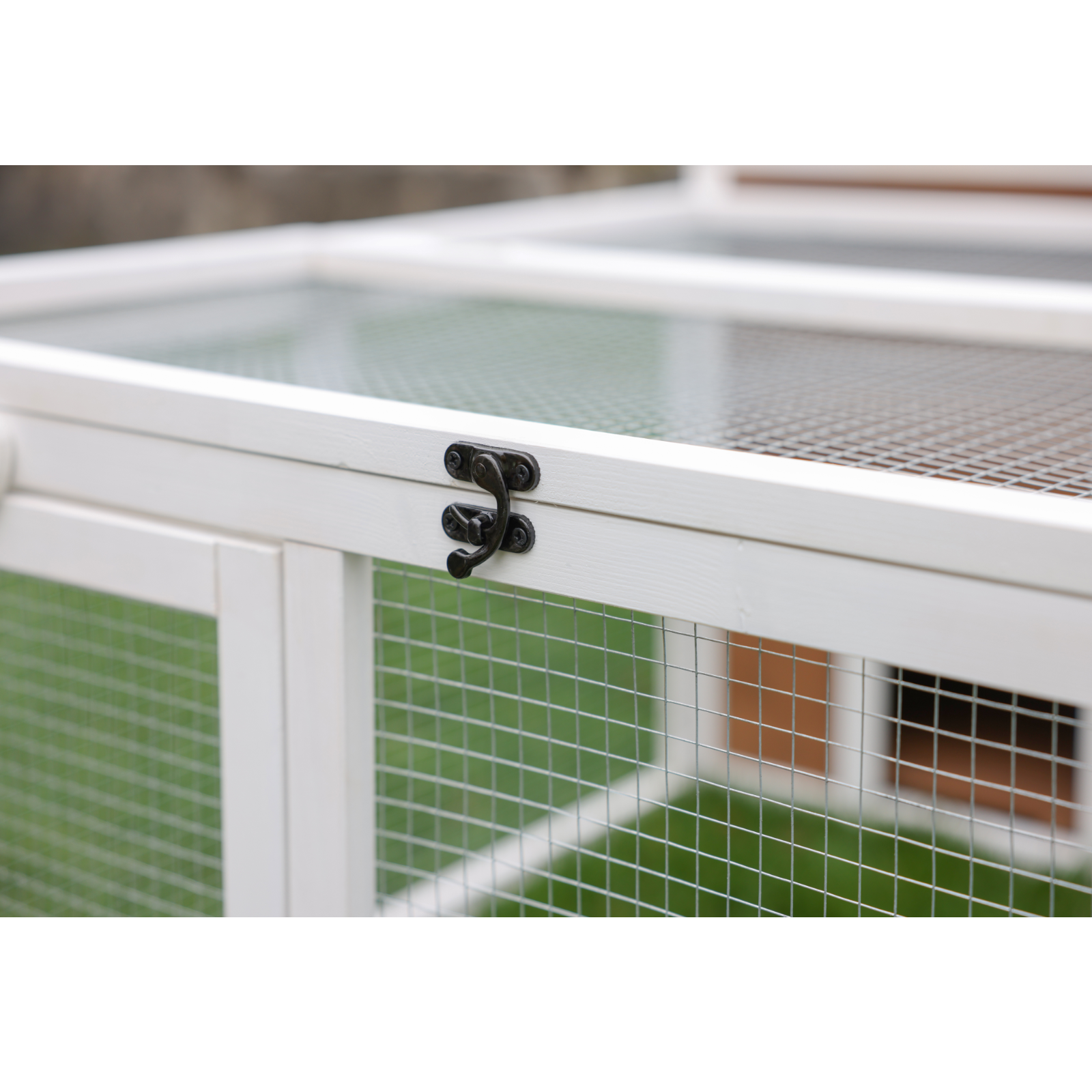 • engmaschiges Gitter und verschließbares Gitterdach schützen vor unerwünschten Gästen