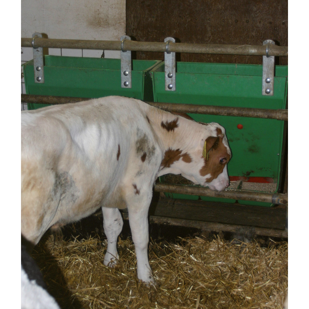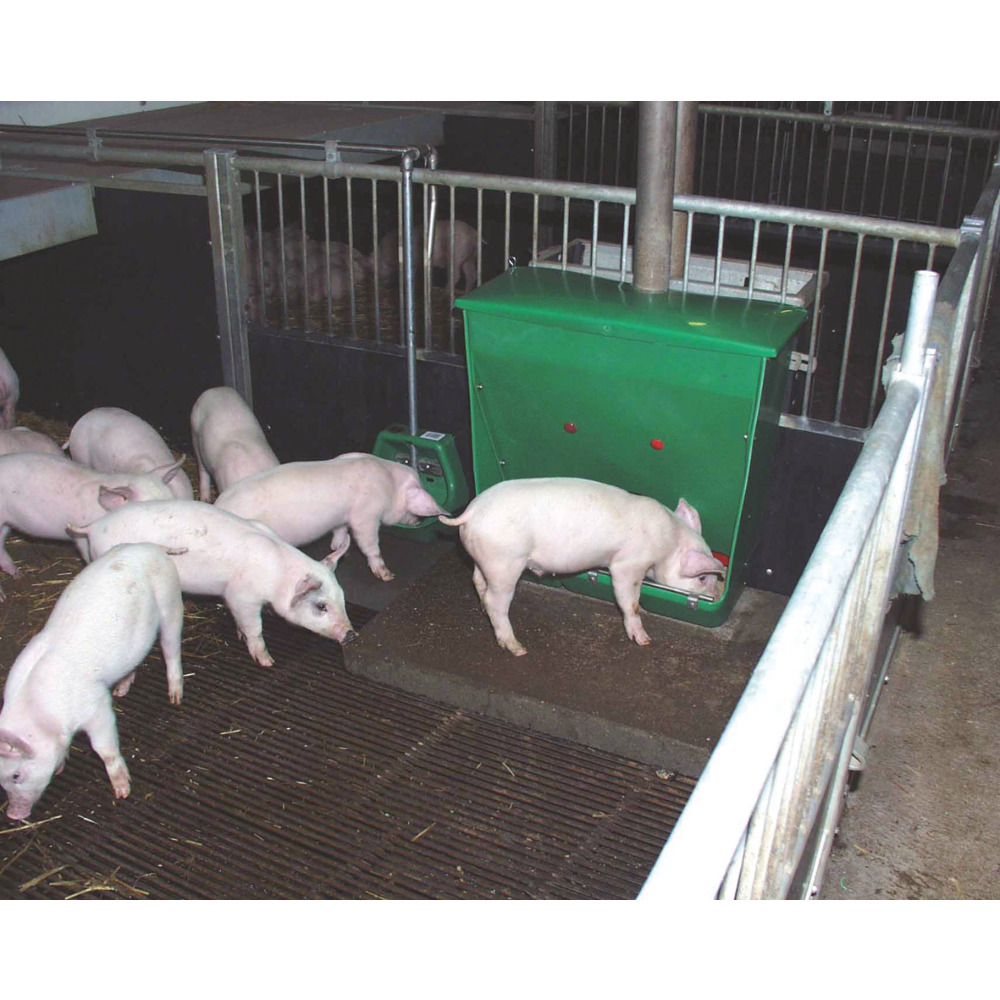 Mit beweglichem und verstellbarem Futterschieber. Für abgesetzte Ferkel (7 bis40 kg). Leicht zu montieren und zu hantieren, da nur 8 kg schwer. BxHxT: 62 x 65 x 27 cm, Lieferung ohne Deckel.