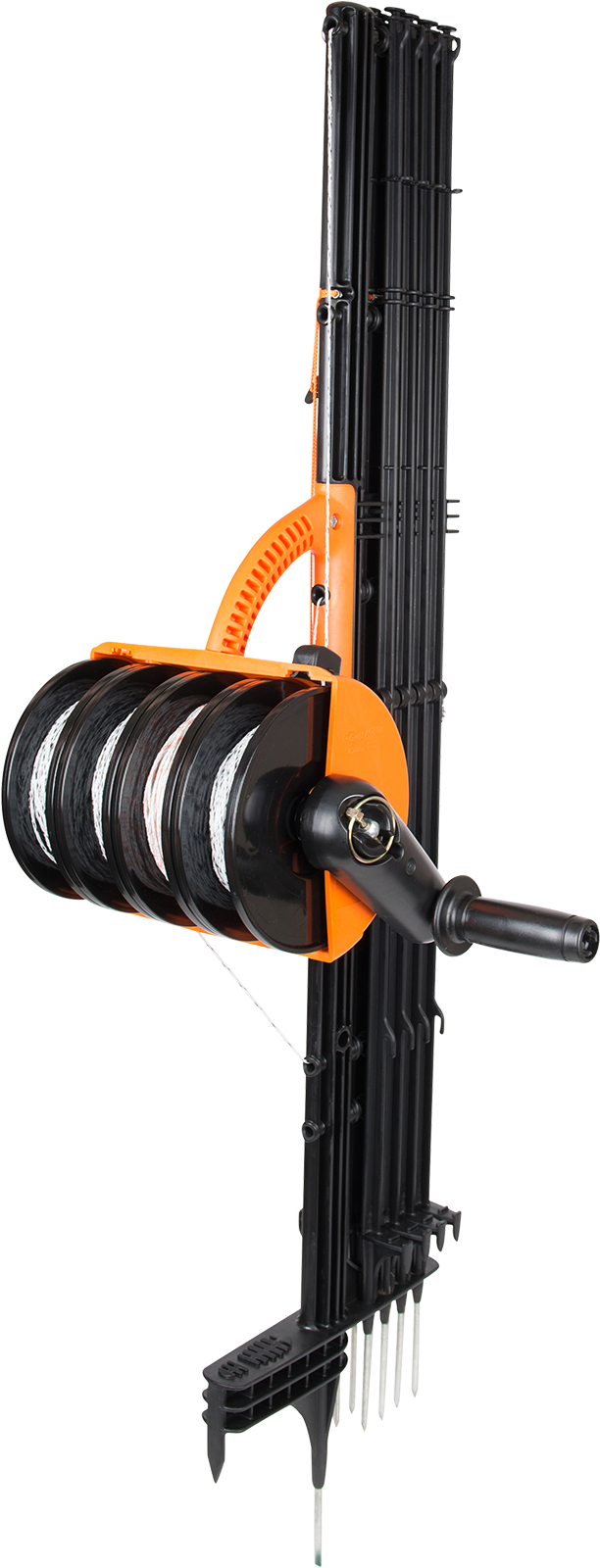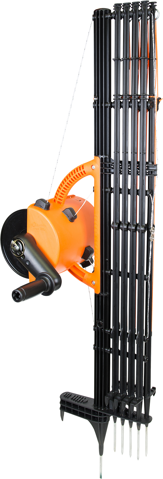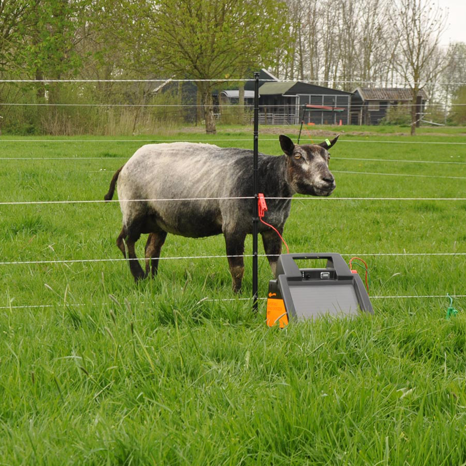 Mobilzaun-Komplettsystem 100 m. Der SmartFence V2 ist der ideale Zaun für Schafe, Ziegen und Kühe unddie perfekte Alternative für ein herkömmliches Zaunnetz. Pfähle, Haspeln und Drähte sind in einem System kombiniert. Garantierte Stromversorgung dank ausgezeichneter Leitfähigkeit über Turbostromleiter. Mit dem SmartFence sorgen Sie selbst für eine mobile Umzäunung von höchstens 100 Metern Länge. Dank flexibel einsetzbarer Pfähle kann der Zaun in jeder gewünschten Form aufgestellt werden. Der Smartfence besteht aus 10 Pfählen und 4 Drähten. Die Drähte sind höhenverstellbar. Das System ist sehr einfach und innerhalb kürzester Zeit auf- und wieder abzubauen. Es ist handlich mitzunehmen und zu verstauen. Der SmartFence verfügt über einen verstärkten Fuß für optimale Standfestigkeit im Boden. Möglichkeit zur Verbindung mehrerer Smart Fences.Höhe der Litzen: 15, 30, 50, 90 cmIdeal für eine schnelle Abteilung der Weide oder einen behelfsmäßigen Zaun