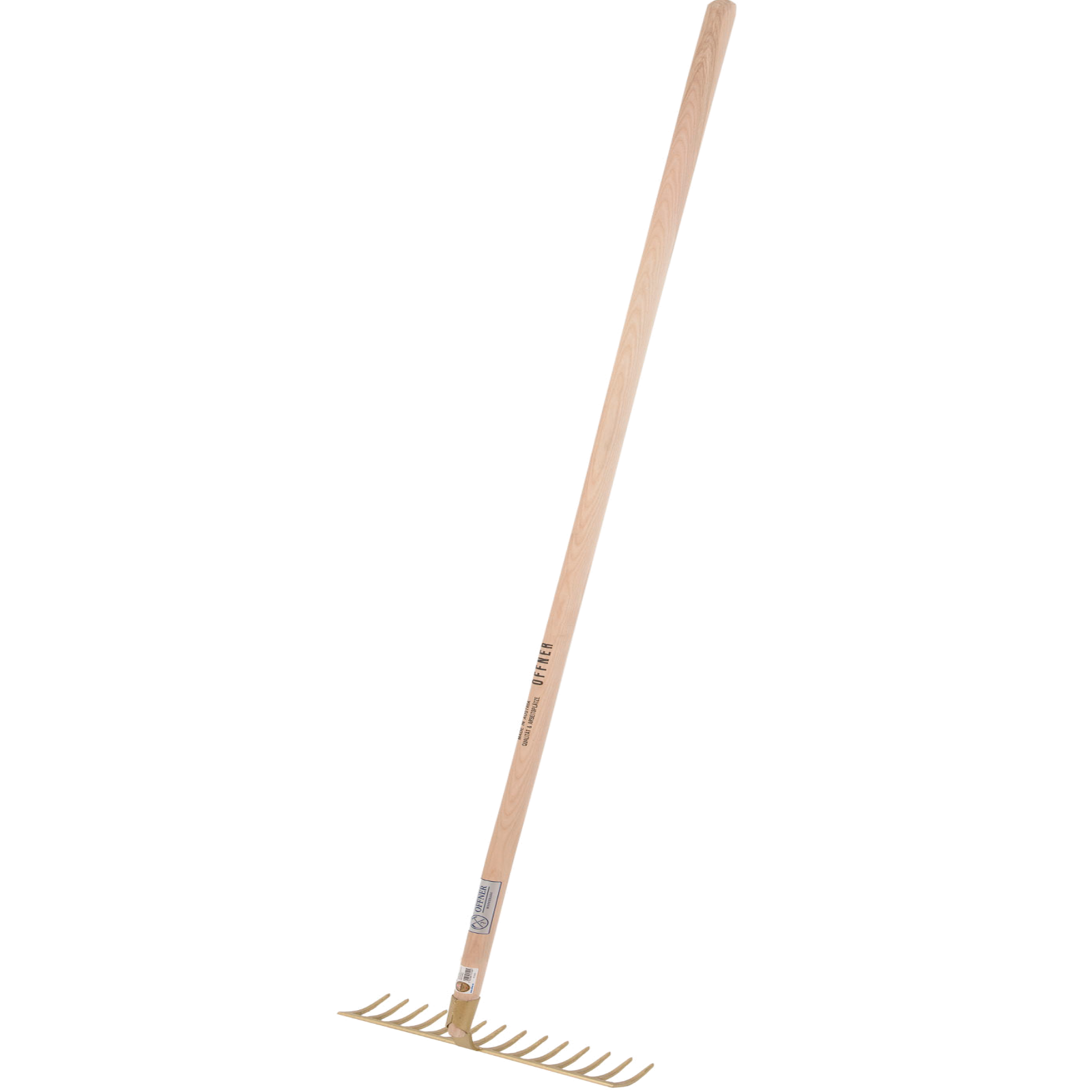 Der Offner Goldrechen mit 14 Zinken aus geschmiedetem Stahl hat einen 170 cm langen Holzstiel aus EschenholzDer sehr robuste Gartenrechen hat eine geschmiedete Dülle und eine Arbeitsbreite von 35 cm.