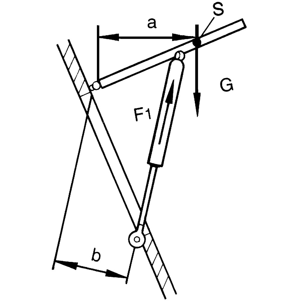 • Die Gasfeder ist mit der Kolbenstange nach unten einzubauen
