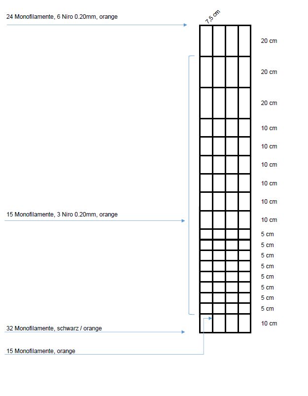 Besonders geringe Maschenweite im unteren Bereich des Netzes (5 cm)