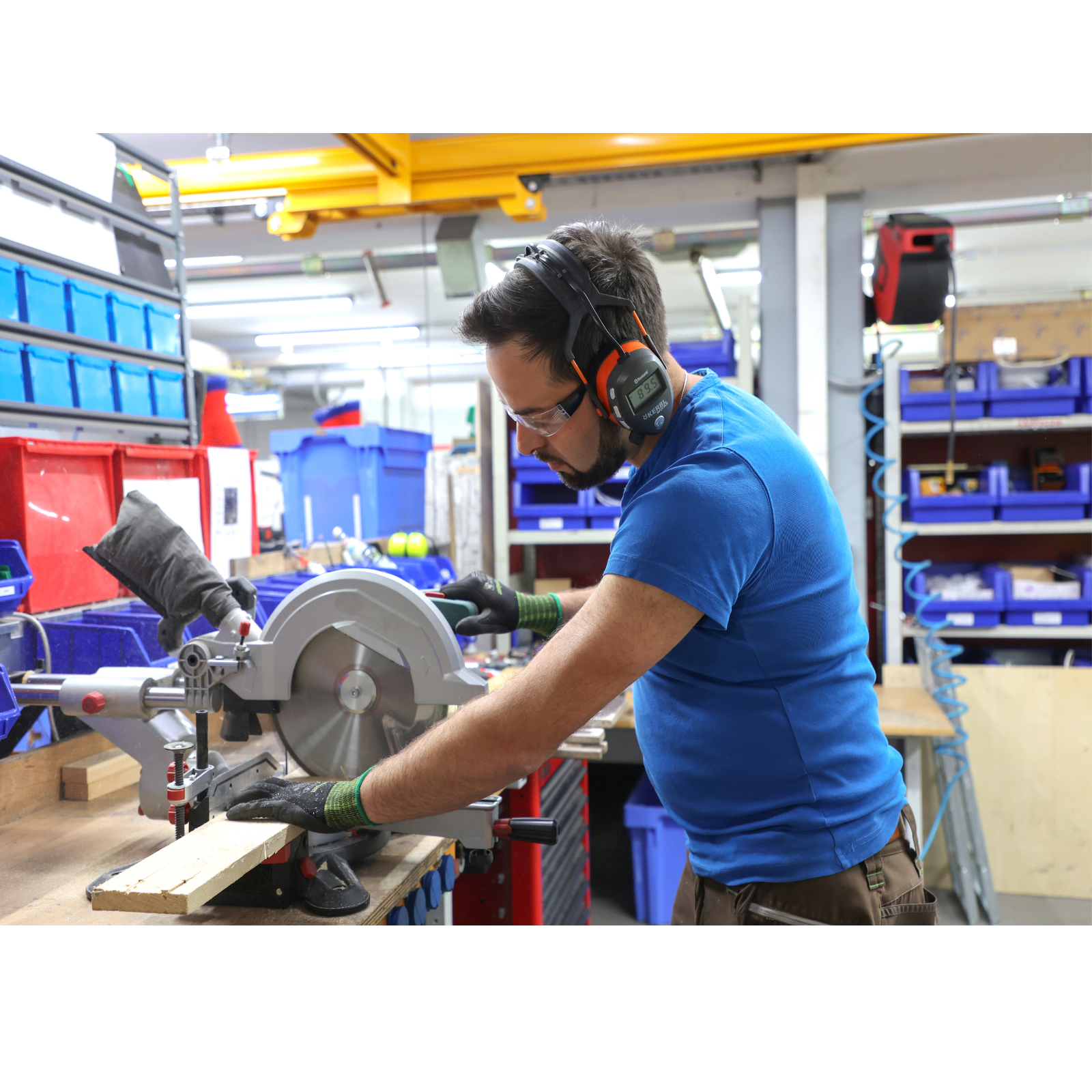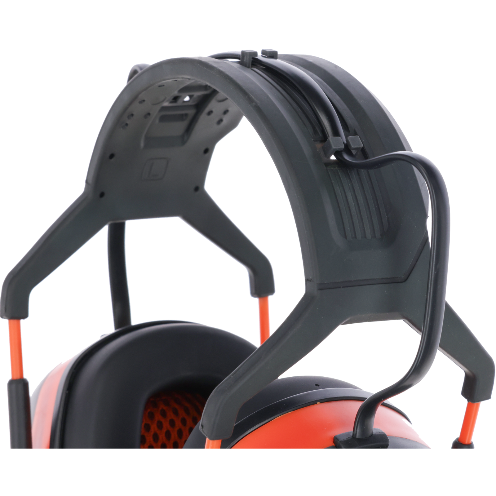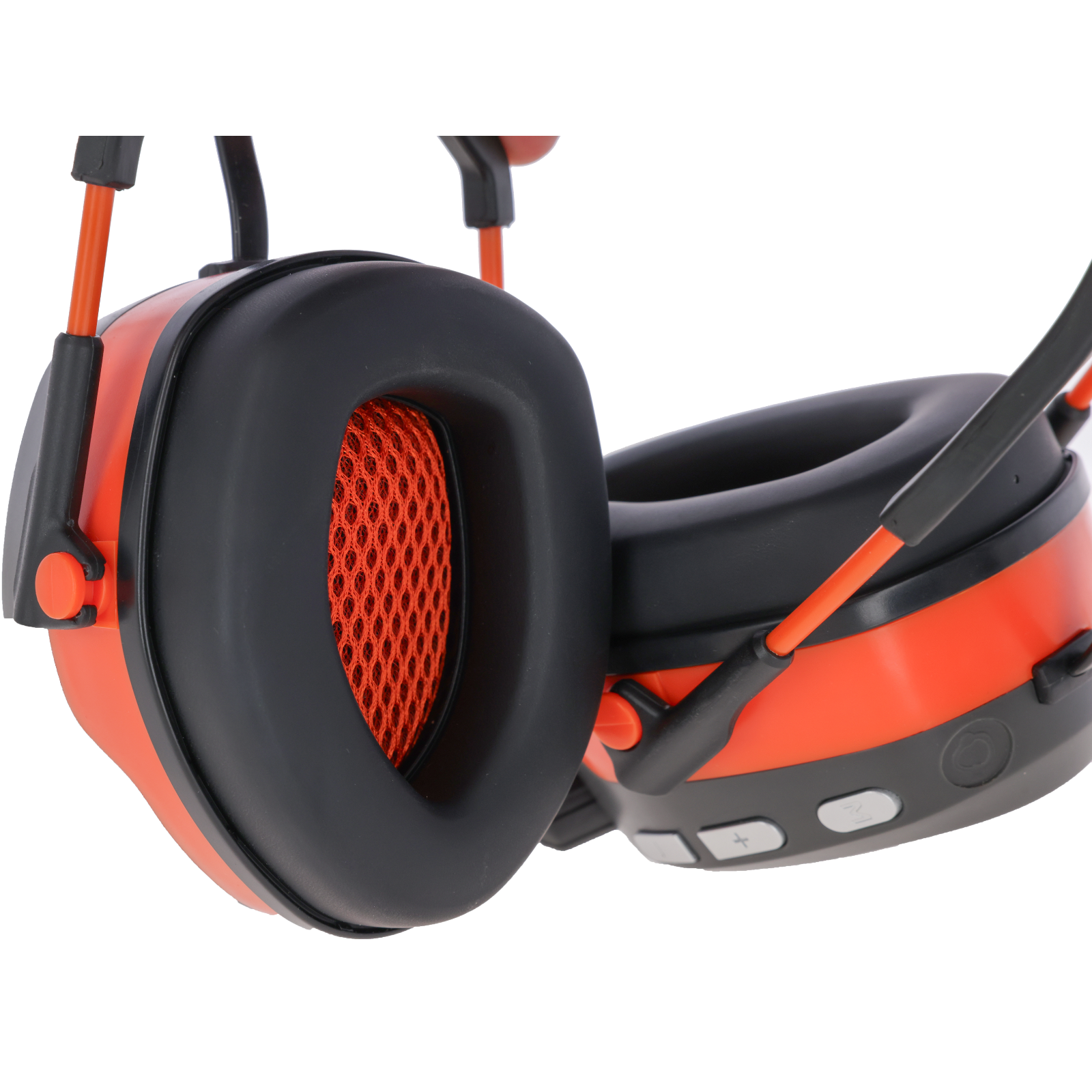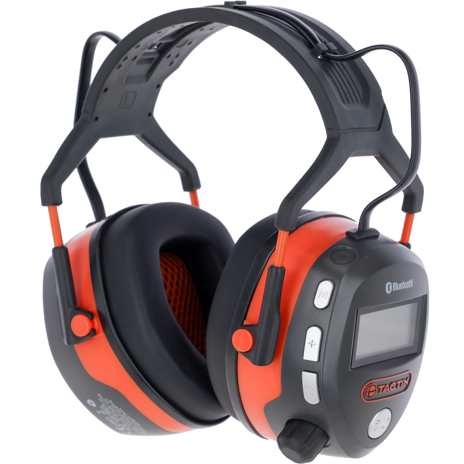 Gehörschutzradio mit Bluetooth und Radio: Musik und Schutz in Einem.Der elektronische Gehörschutz verfügt über eine Dämmung von 29 Dezibel.Durch die elektronischer Regelung (Hörmodus) kann sich der Anwender unterhalten ohne den Kopfhörer abnehmen zu müssen.Über Bluetooth lässt sich der Kopfhöher problemlos mit Ihren Handy verbinden und ermöglicht so das Abhören von Musik oder telefonieren.Durch das integrierte Mikrofon und die Bedienung über die Tasten am Kopfhörer ist jederzeit (auch bei Arbeiten mit Handschuh) ein hoher Anwenderkomfort gegeben.Das integrierte FM-Radio mit digitaler Frequenzanzeige und automatischem Sendersuchlauf bietet eine hervorragende Empfangs-und Klangqualität.Der Kopfhörer bietet eine Top - Ausstattung mit AUX Anschluss inkl. Kabel, Lith-Ionen-Akku mit ca.28 Std Laufzeit und Ladefunktion über mitgeliefertem Micro-USB-Ladekabel.Eigengewicht nur 390g.