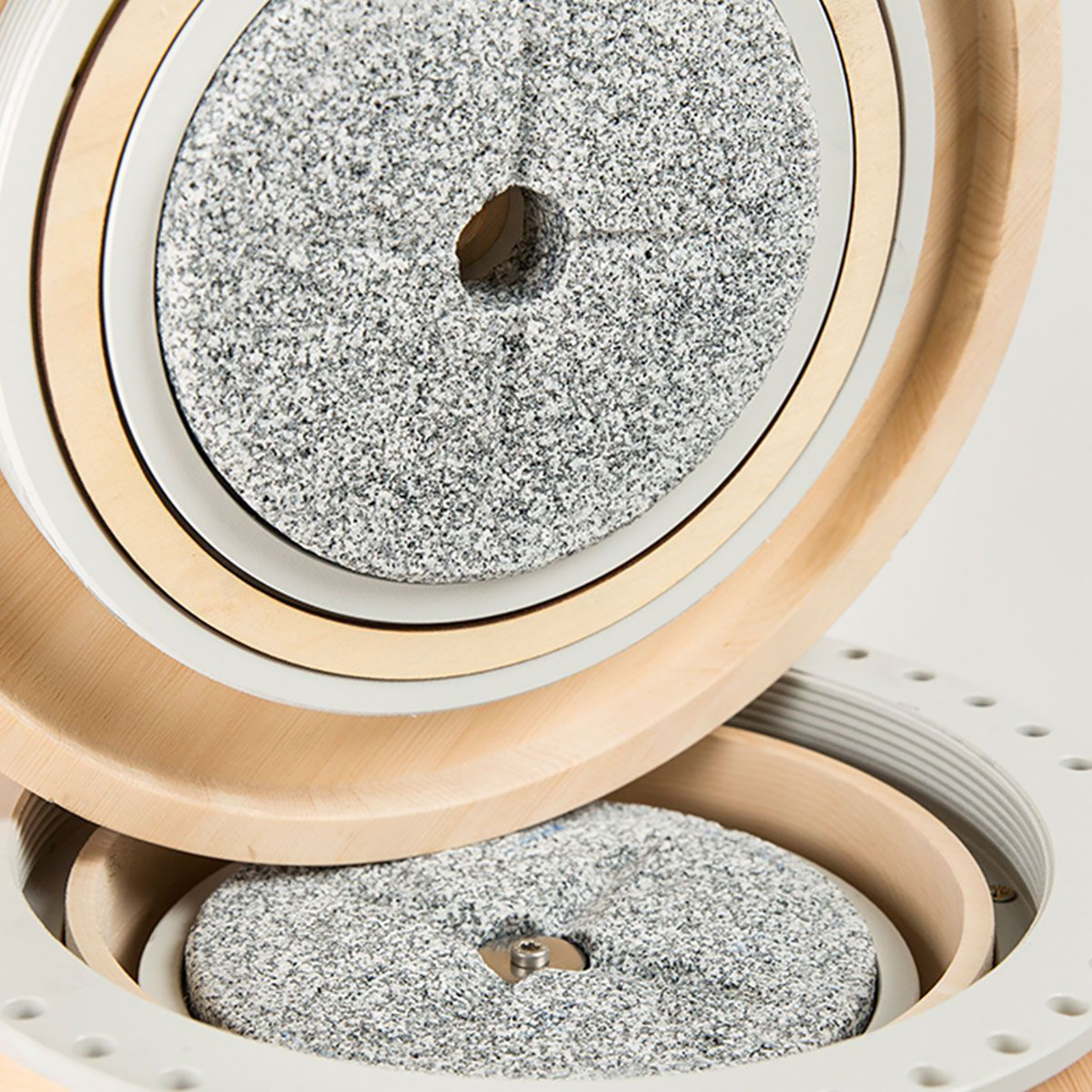 Betrieben mit 230 Volt, 50 Hertz und einer Leistung von 1.100 Watt, vereint die Getreidemühle Industry Zirbe traditionelle Mahltechniken mit moderner Effizienz.