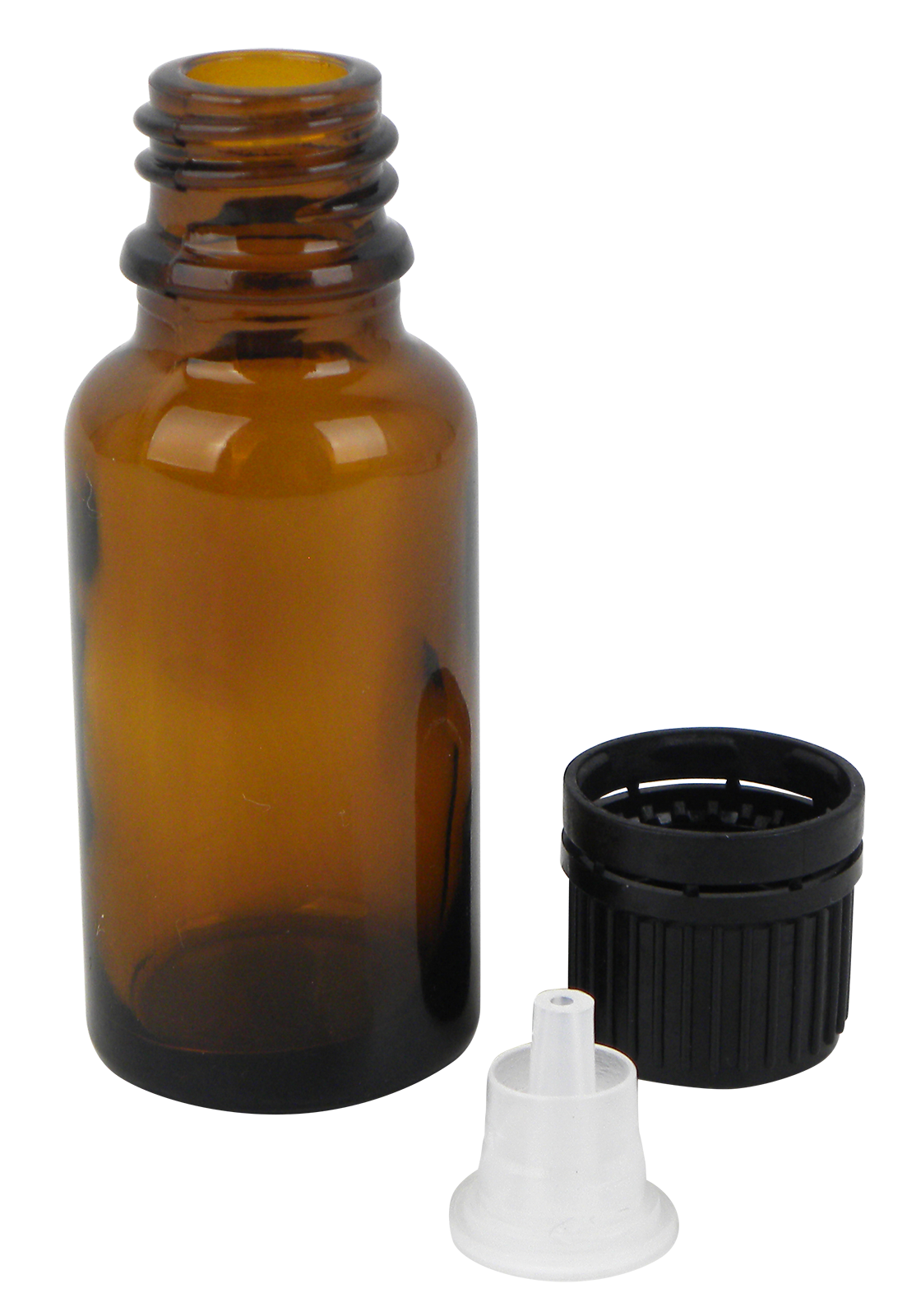 Der Verschluss muss fest aufgeschraubt werden, sodass der Sicherungsring über den unteren Wulst des Glasfläschchens ragt. Beim wieder Öffnen reist dieser ab.