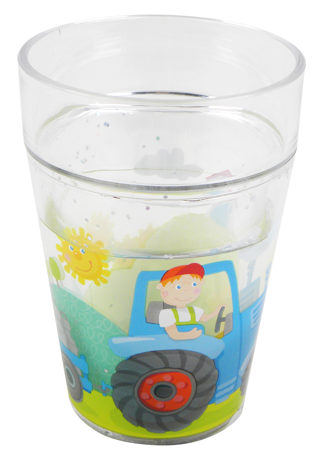 Wem macht Trinken in so einem tollen Becher mit Traktor und Glitzer denn nicht Spaß?Mit einem Durchmesser von 7,5 cm ist der zauberhafte Trinkbecher genau richtig für zierliche Kinderhände. Darüber hinaus ist der HABA-Glitzerbecher aus robustem Kunststoff und kann leicht gereinigt werden. Einschenken, bitte!Glitzerbecher aus robustem Material. Frei von Bisphenol A. 150ml Füllmenge.