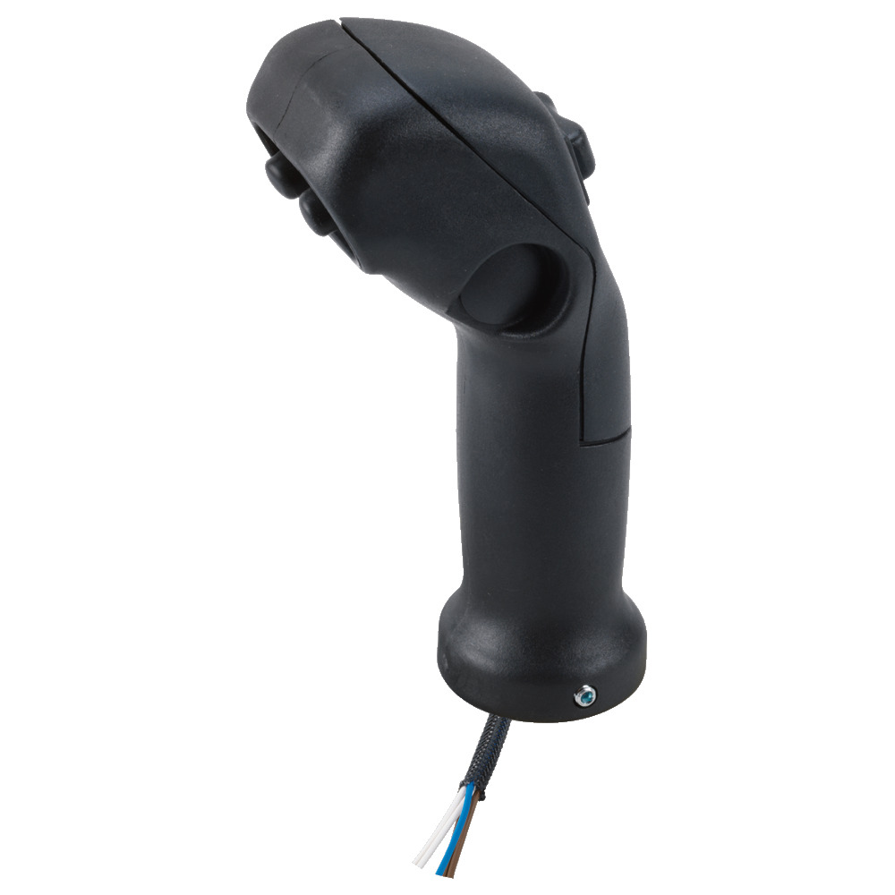 Mit 2 Tastschalter, 1 Wippschalterrastend. Zum Aufstecken auf vorhanden Steuerhebel oder auf das Betätigungselement Nr. 34620. Innen-Ø zum Aufstecken 14 mm mit Wurmschraube zum fixieren. Bohrungstiefe 70 mm, Kabellänge 800 mm, Griffhöhe 155mm, Stromstärke max. 12 A.