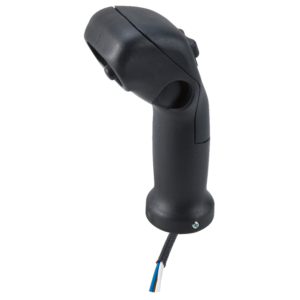 Mit 1 Tastschalter und 1 Wippschalter tastend mit Federrückstellung. Zum Aufstecken auf vorhanden Steuerhebel oder auf das Betätigungselement Nr. 34620. Innen-Ø zum Aufstecken 14 mm mit Wurmschraube zum fixieren. Bohrungstiefe 70 mm, Kabellänge 1500 mm, Stromstärke max. 12 A.