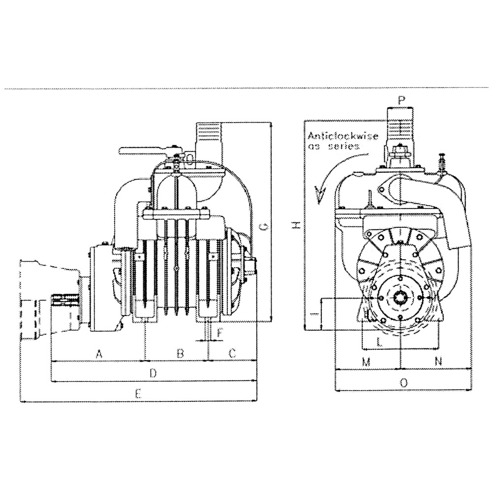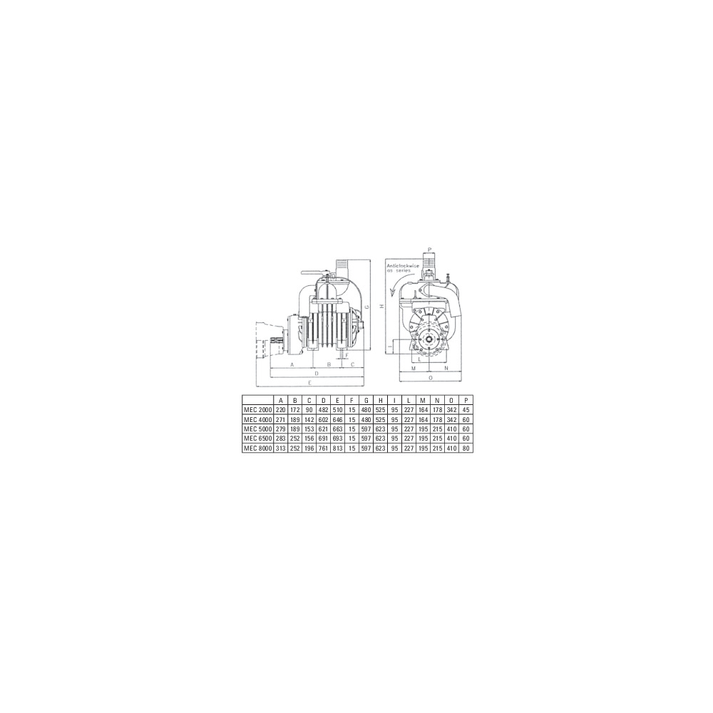Battioni & Pagani Vakuumpumpen der Serie MEC mit Übersetzungsgetriebe. Der Antrieb erfolgt über eine Gelenkwelle mit einer maximalen Drehzahl von 600U/min. Die ideale Arbeitsdrehzahl liegt zwischen 400 bis 500 U/min.