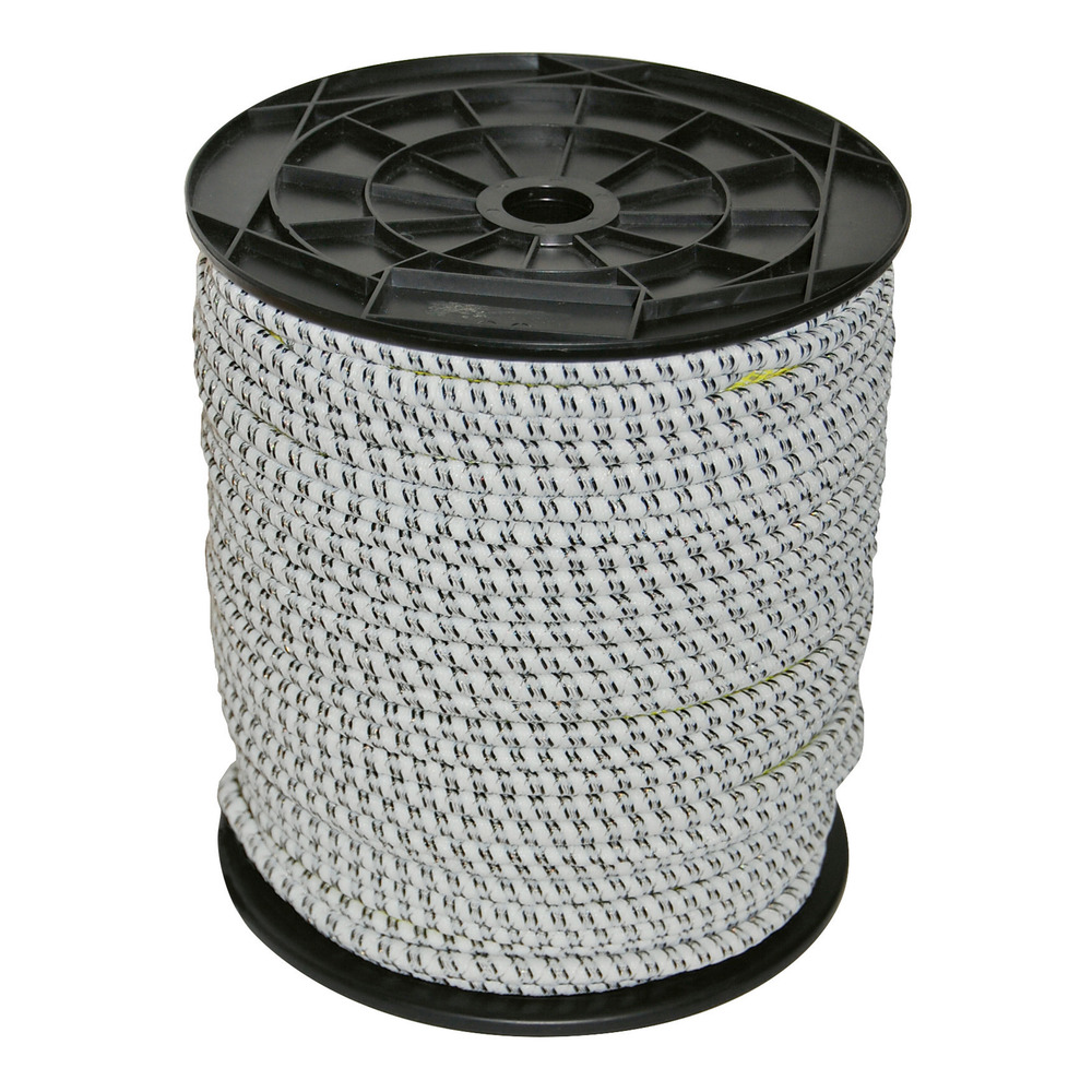 Stromführendes 7 mm Elastikseil mit 3 x 0,30 mm Niroleiter (3 Jahre Garantie). Auf ca. doppelte Länge aufziehbar, kein Einklemmen von Mähnen- oder Schweifhaaren, geeignet für flexible Torsysteme (z. B. E-Line). Länge 25 m.