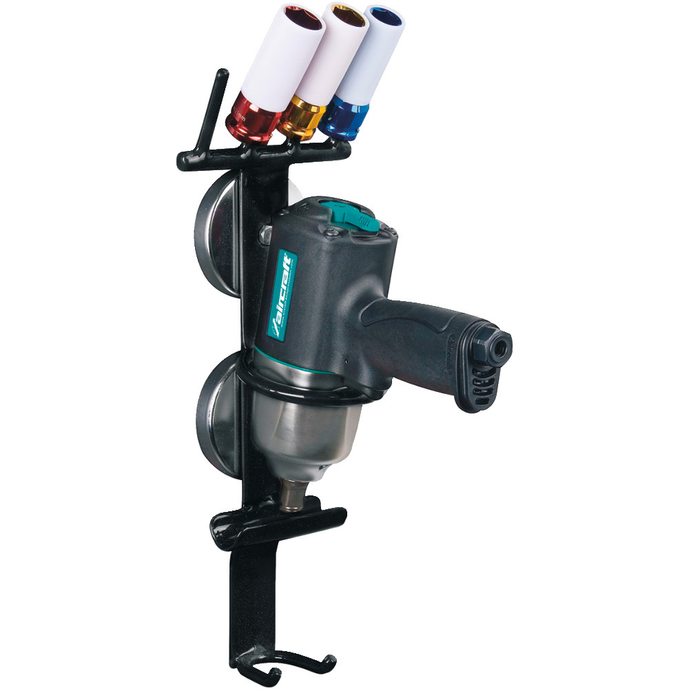 Praktische Halterung für Schlagschrauber und 4 Stecknüsse. 2 starke Haltemagnete.