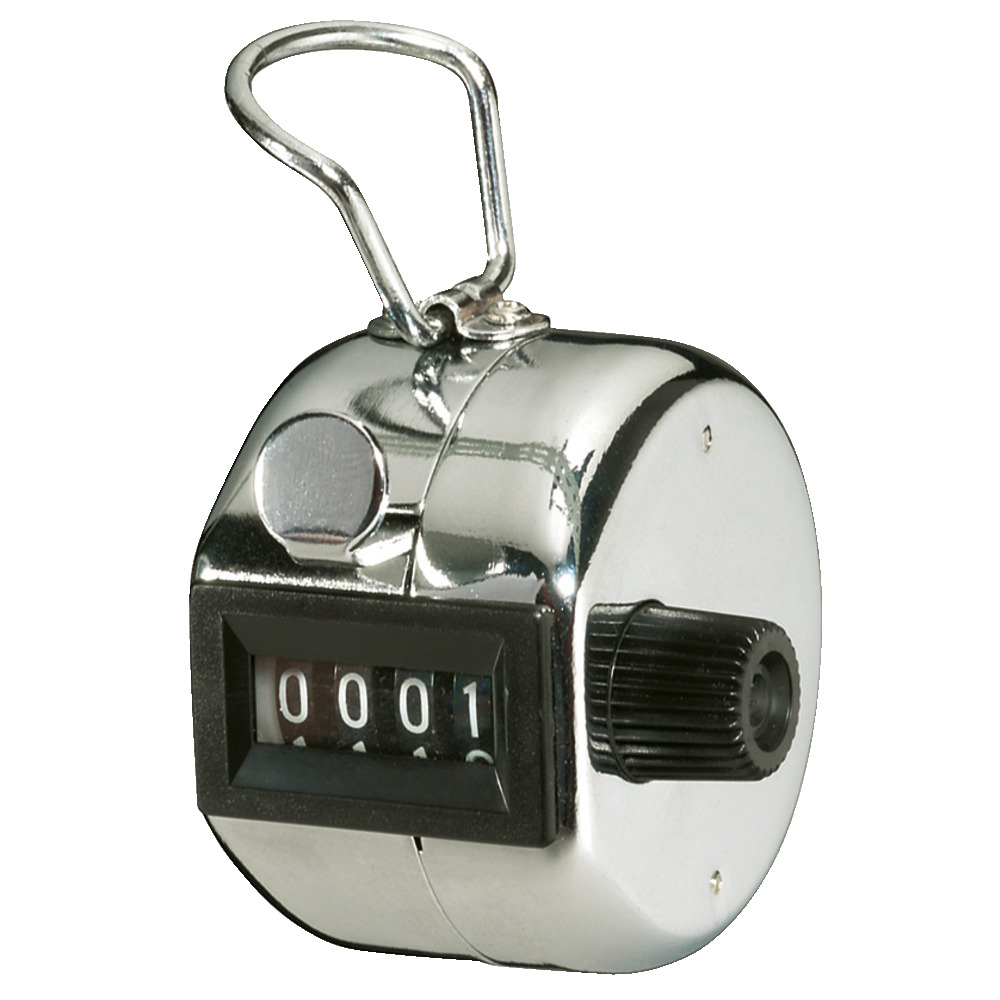 Bei diesem mechanischen Hebelzähler erfolgt die Zählung auf Tastendruck, die Nullstellung mittels Drehknopf (vermeidet ungewolltes zurücksetzen). 4-stellige Anzeige, Gehäuse aus Chromstahl, mit Fingerring zum besseren Halten.