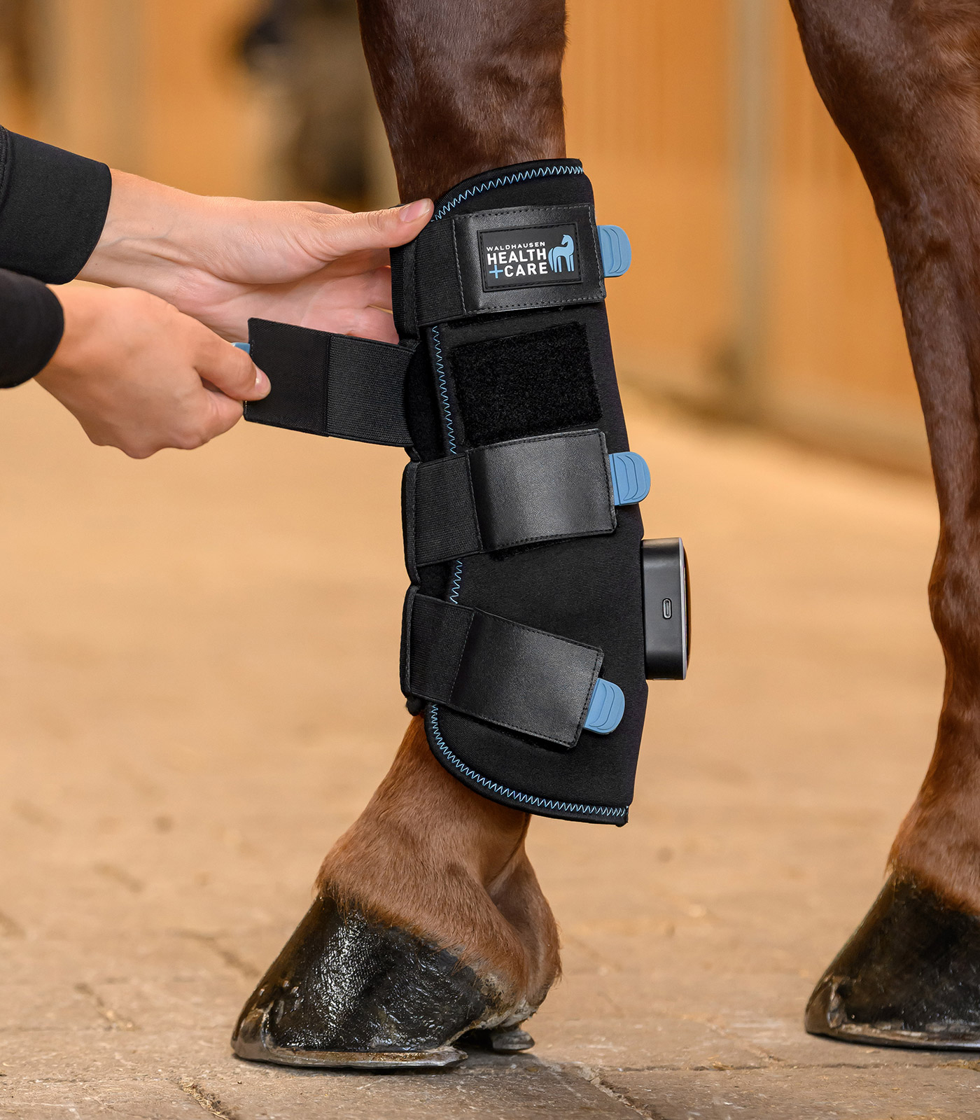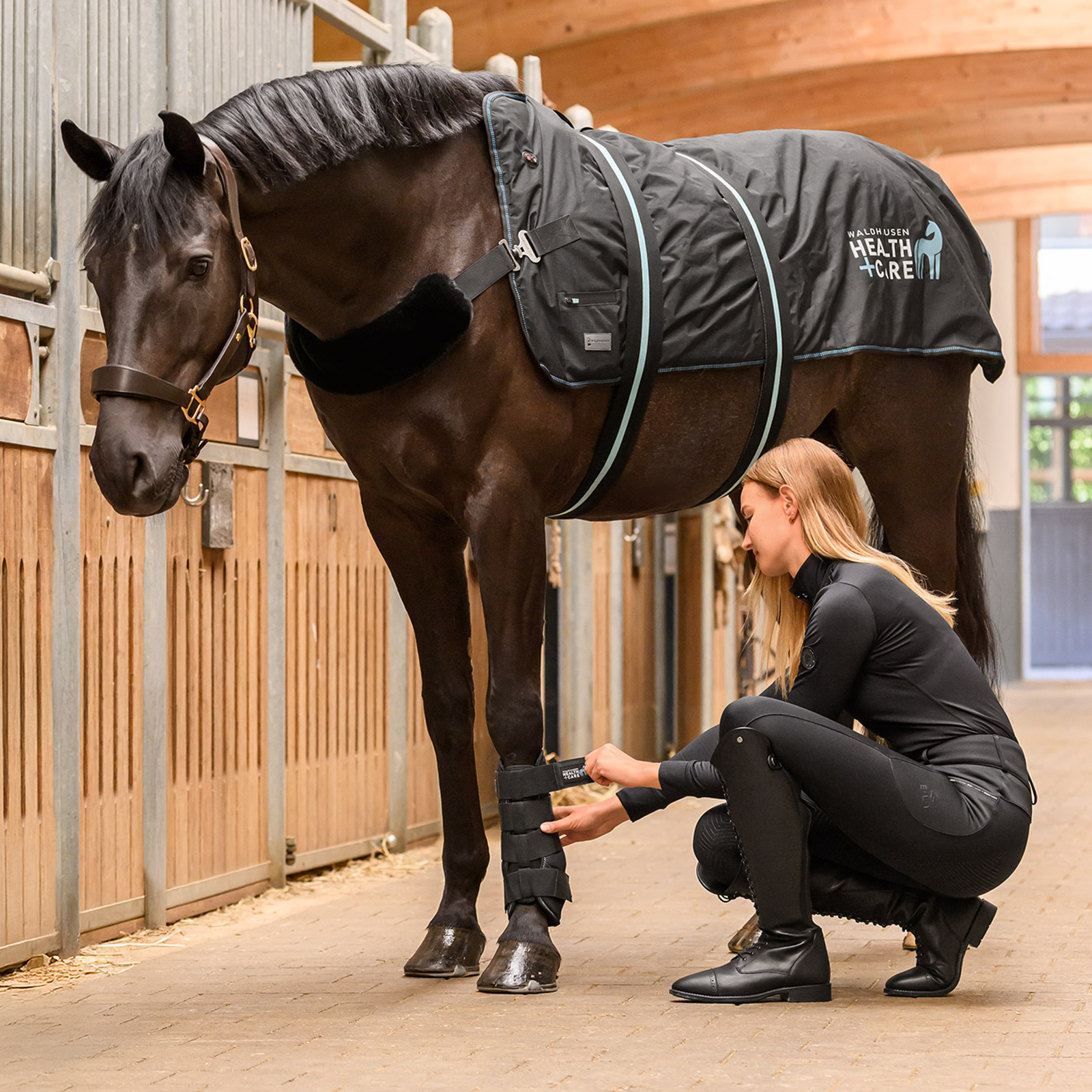 Auch in der kalten Jahreszeit ist sie optimal geeignet, um das Pferdebein bei längeren Ruhephasen in der Box warmzuhalten und die Durchblutung anzuregen – dies kann das Verletzungsrisiko deutlich reduzieren.
